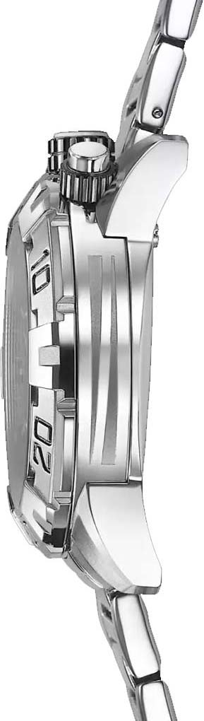 Наручные мужские часы-хронограф с секундомером. Рифленый безель с минутной шкалой. Циферблат с накладными метками в виде штрихов. Окошко даты находится в положении 12 часов. Рифленая заводная головка находится в положении 12 часов. Кнопки управления хронографом расположены в положении 11 часов и 1 час. Стальная задняя крышка крепится на 4-х винтах. Надежный стальной браслет с раскладывающейся застежкой.