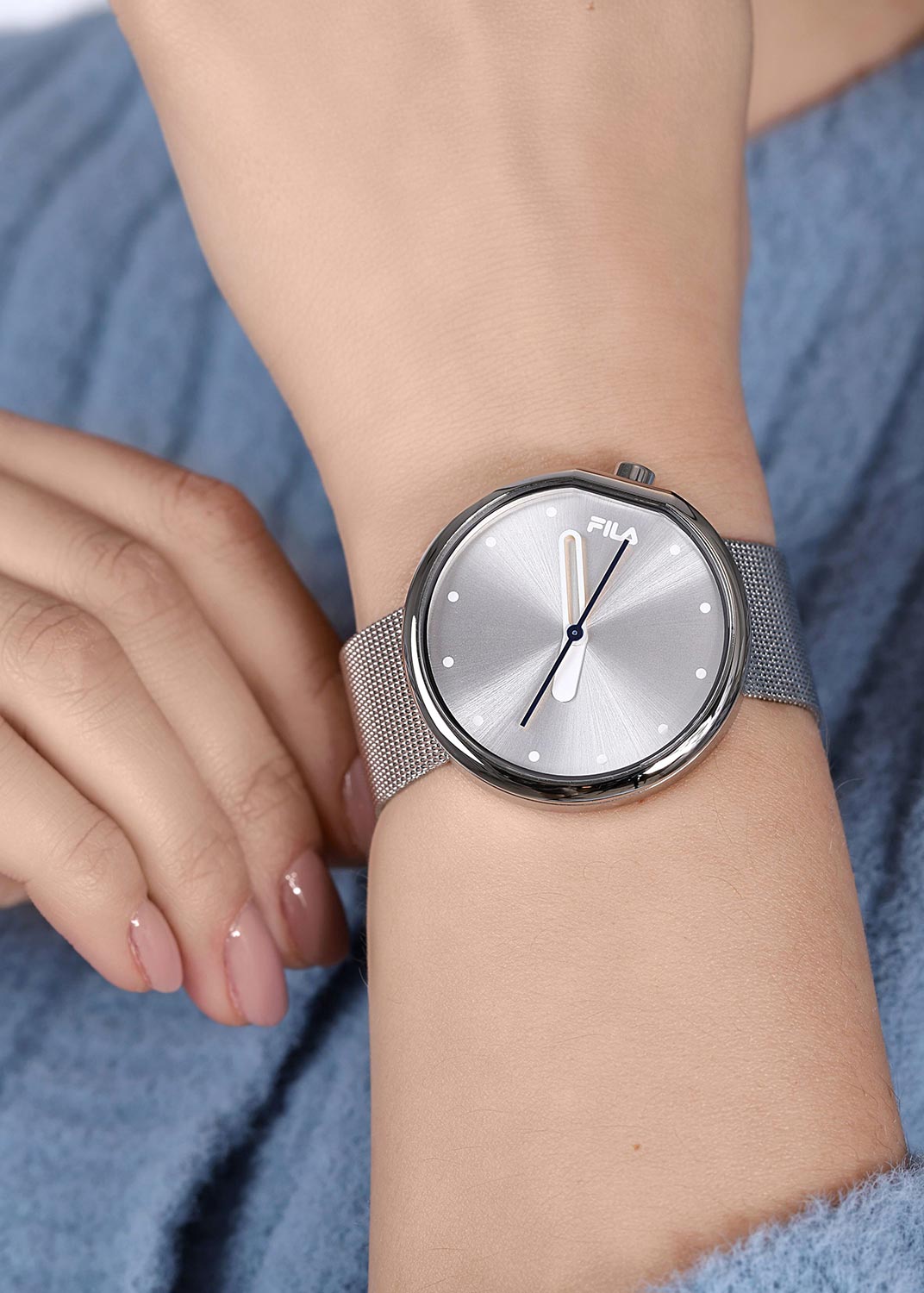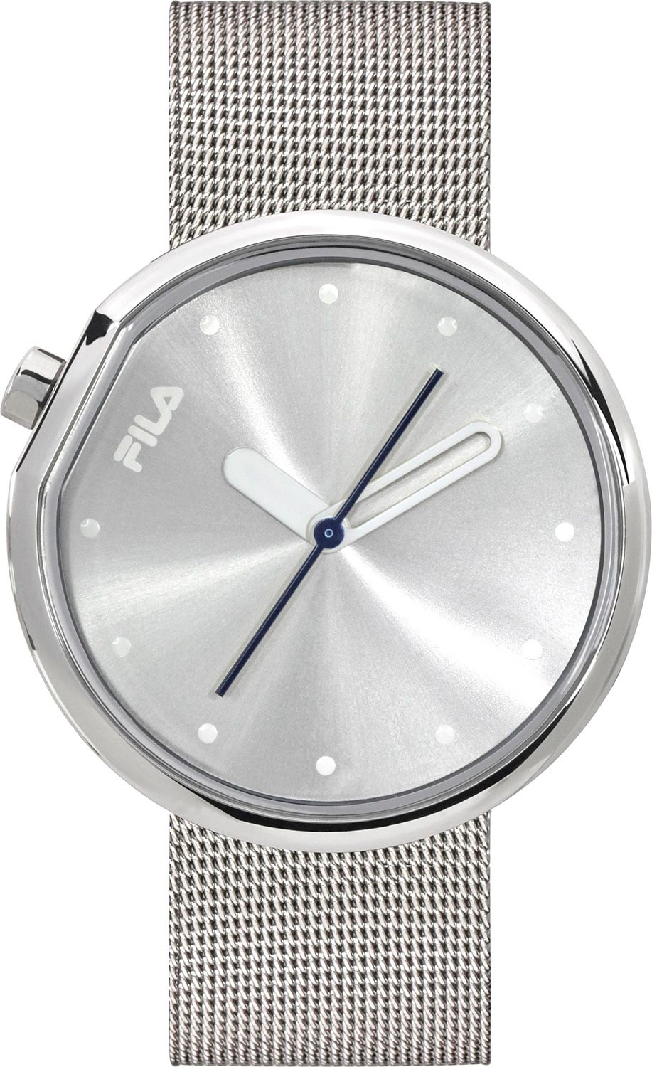 Наручные часы унисекс. Круглый стальной корпус с полированной отделкой. Циферблат выполнен по технологии Sunray (солнечные лучи) и украшен фирменным логотипом. Метки в виде точек. Скругленные прямоугольные стрелки в стиле Baton. Оригинальная секундная стрелка. Минеральное стекло. Заводная головка находится слева на позиции 10 часов. Стальной браслет миланского плетения.