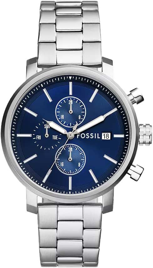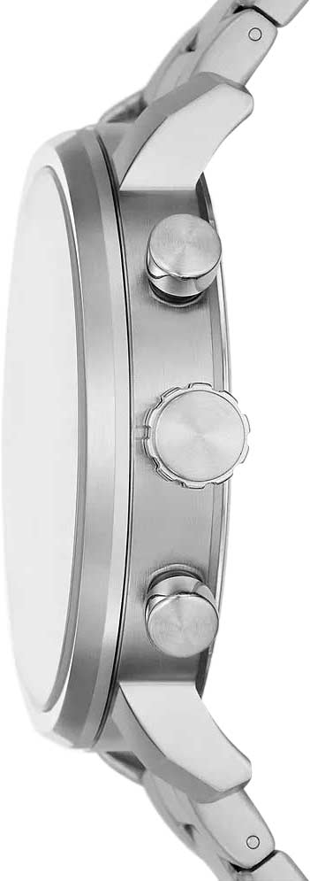 Окошко даты находится в положении 3 часа. Указатель дня недели вынесен на отдельный циферблат в положении 9 часов. Рифленая заводная головка. Браслет с раскладывающейся застежкой.