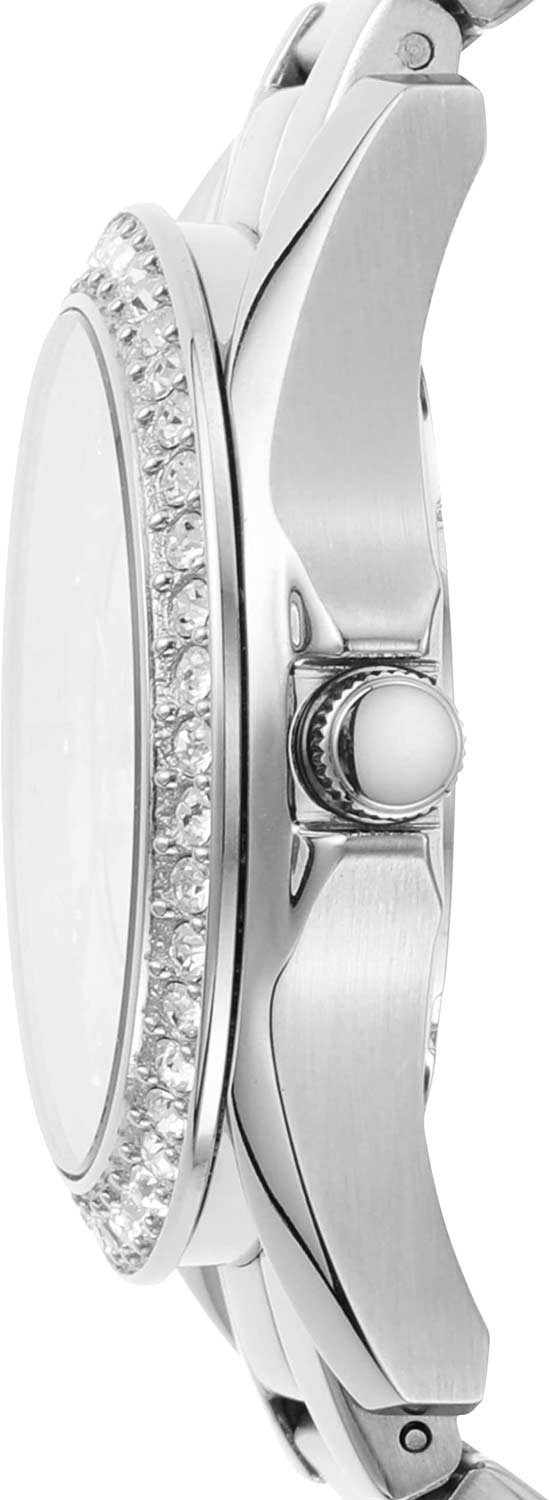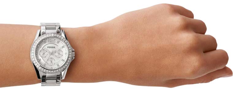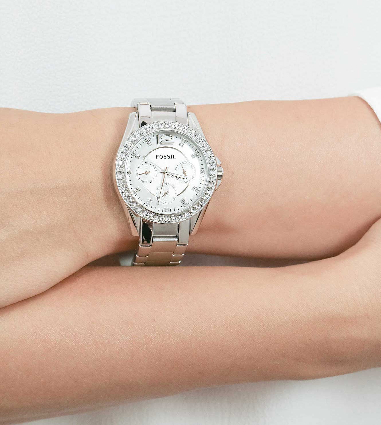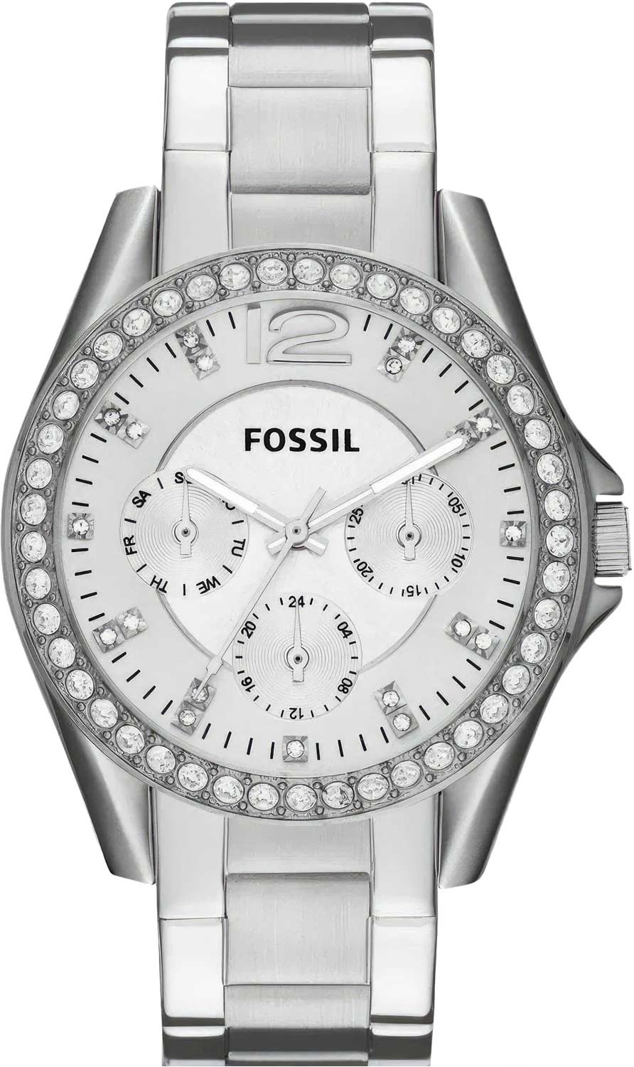 Идеальный аксессуар для повседневного общения со временем. С ним вы не останетесь незамеченной. Riley Multifunction Stainless Steel Watch. Женские часы с круглым стальным корпусом. 12-ти и 24-х часовой формат времени. Циферблат выполнен по технологии Sunray (солнечные лучи). Метки в виде штрихов, инкрустированных кристаллами, и арабской цифры 12. День недели и число вынесены на отдельные циферблаты. Рифленая заводная головка с защитой. Браслет с раскладывающейся застежкой.