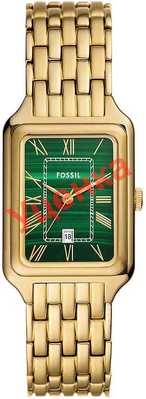 Женские наручные часы в прямоугольном стальном корпусе. Циферблат из малахита. Метки в виде римских цифр. Окошко даты находится в положении 6 часов. Рифленая заводная головка. Браслет с раскладывающейся застежкой.