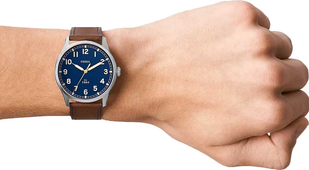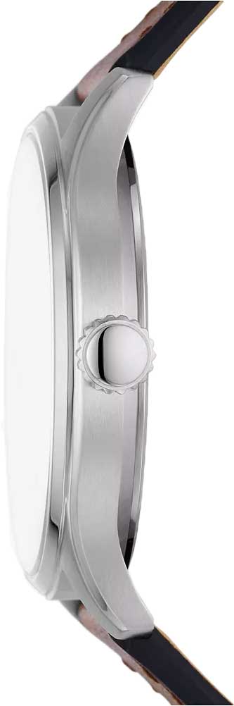 Мужские часы с круглым стальным корпусом. Циферблат с метками в виде арабских цифр. Рифленая заводная головка. Удобный ремешок из кожи, полученной от кожевенного завода, сертифицированного LWG. Классическая застежка.