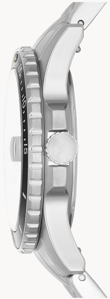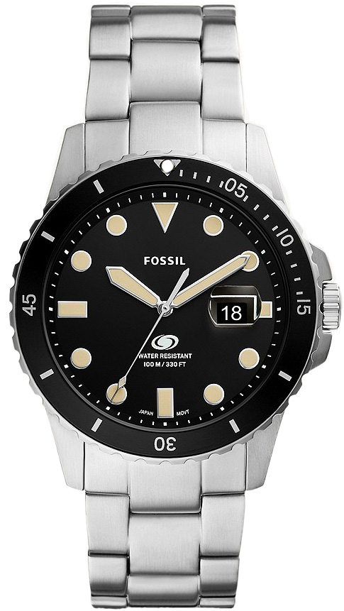 Стильный дизайн корпуса и функциональность - выбор мужчины, который стремится к достижению новых целей. Fossil Blue. Мужские часы в дайверском стиле. Метки в виде точек. Окошко даты находится в положении 3 часа. Стальной браслет.