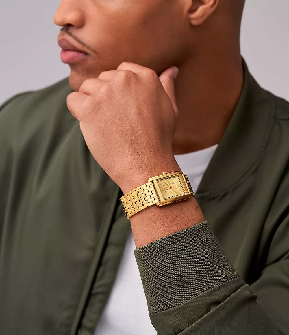 Классический и продуманный до мельчайших деталей, этот аксессуар идеален для современного ритма жизни. Мужские наручные часы. Прямоугольный стальной корпус. Циферблат выполнен по технологии Sunray (солнечные лучи). Метки в виде римских цифр. Рифленая заводная головка. Браслет с раскладывающейся застежкой.
