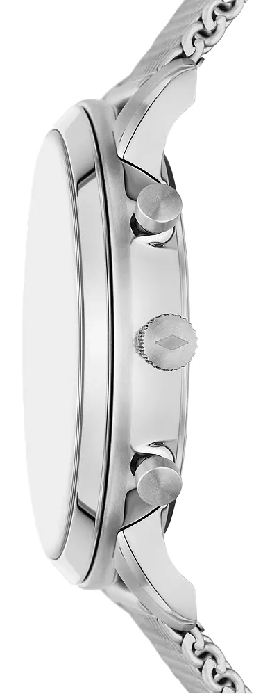 Функциональность и строгий дизайн позволяют использовать эти аксессуары в стильном повседневном образе. Часы-хронограф с секундомером. Метки в виде штрихов и римских цифр VI И XII. Окошко даты находится между метками 4 и 5 часов. Рифленая заводная головка. Стальной миланский браслет. В комплекте также идет стильный кожаный браслет.
