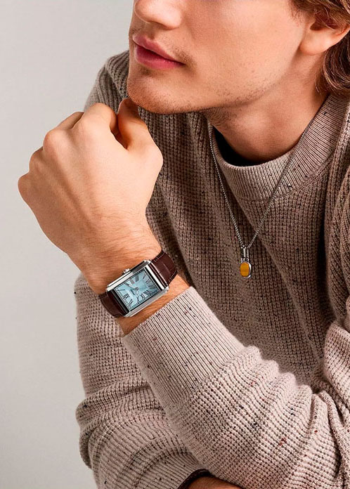 Мужские наручные часы Carraway. Прямоугольный стальной корпус. Циферблат выполнен по технологии Sunray (солнечные лучи). Метки в виде римских цифр. Рифленая заводная головка. Кожаный ремешок с мягкой нубуковой подкладкой. Классическая застежка.