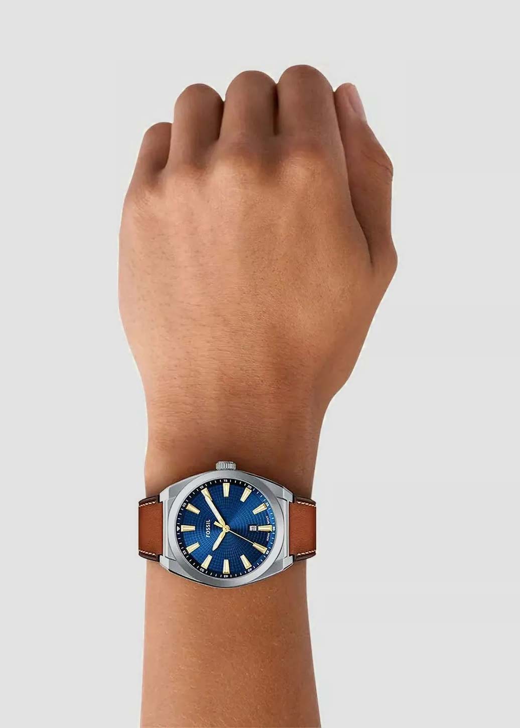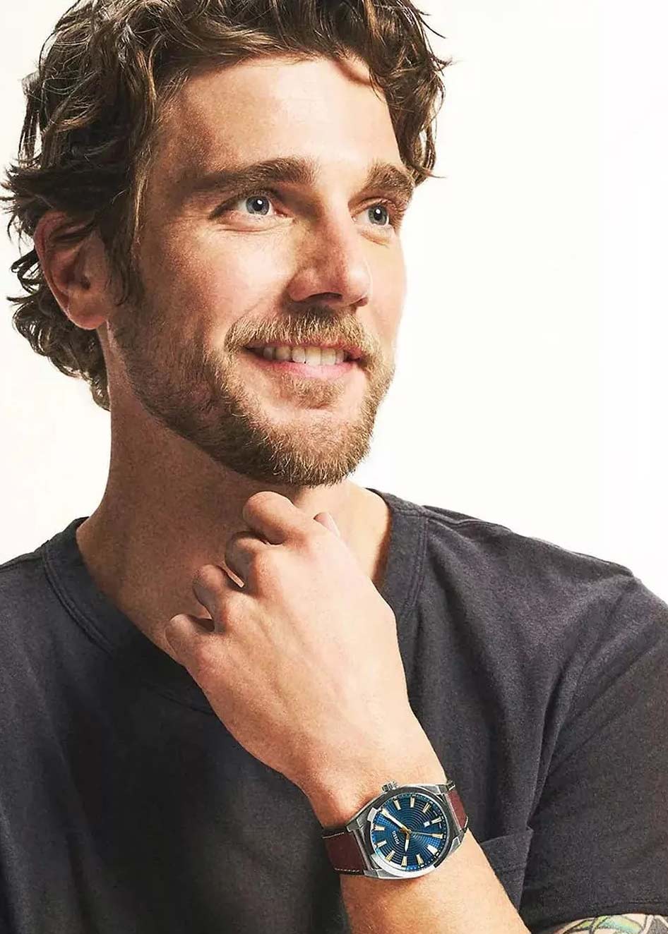 Мужские наручные часы. Круглый стальной корпус. Гильошированный циферблат с метками в виде штрихов выполнен по технологии Sunray (солнечные лучи). Окошко даты находится в положении 6 часов. Рифленая заводная головка. Удобный кожаный ремешок с классической застежкой.