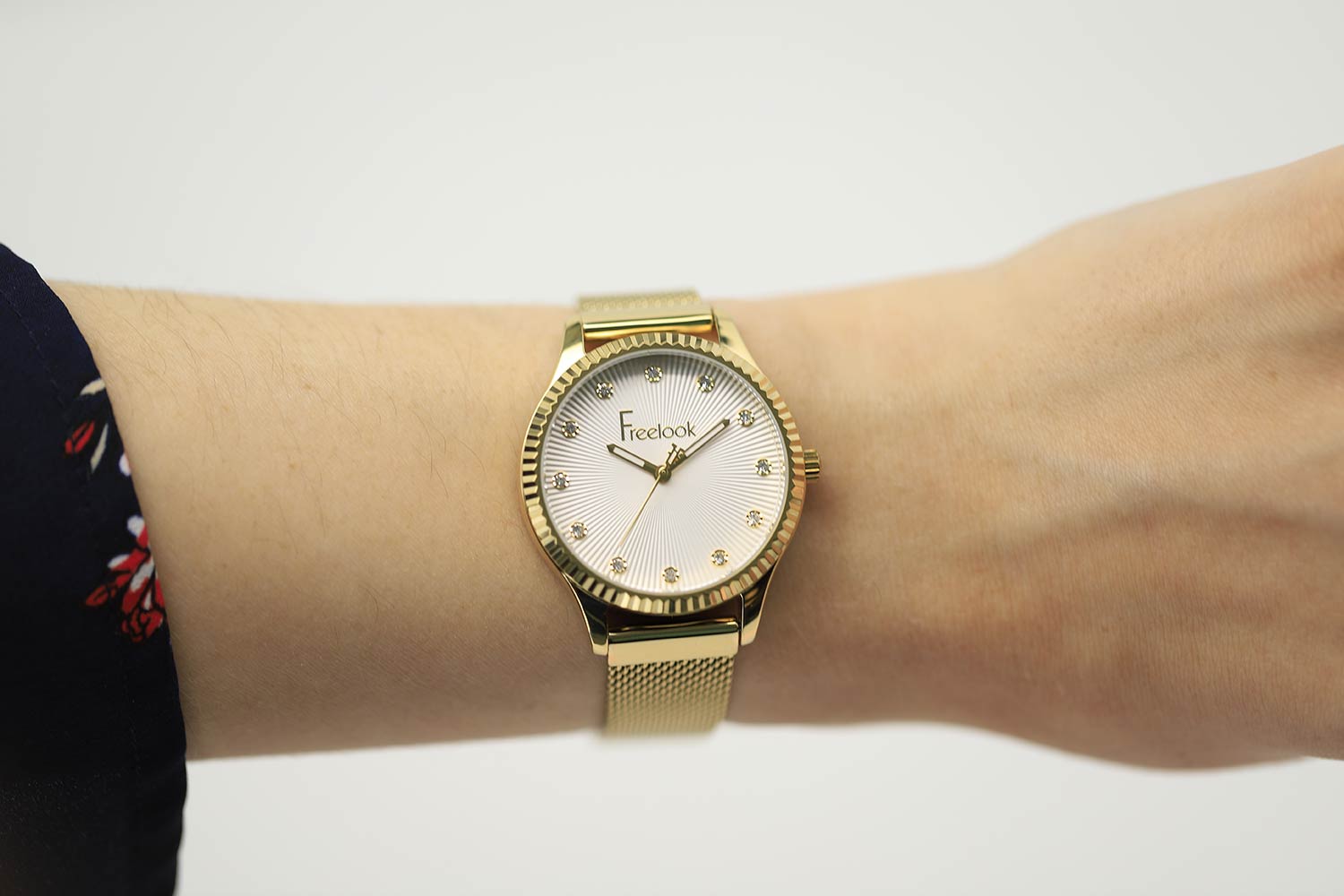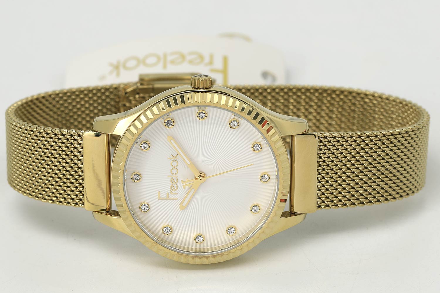 Эти стильные кварцевые часы покорят каждую женщину своим отменным дизайном. Eiffel. Корпус круглой формы с рифленым безелем. Циферблат украшен декоративным узором. Метки в виде точек, выполненных из кристаллов Swarovski. Заостренные прямоугольные стрелки с люминесцентным покрытием, которое светится в темноте после непродолжительной зарядки на свету. Браслет миланского плетения с регулируемой застежкой. Секундная стрелка, циферблат, рифленая заводная головка и застежка украшены фирменным логотипом Freelook.