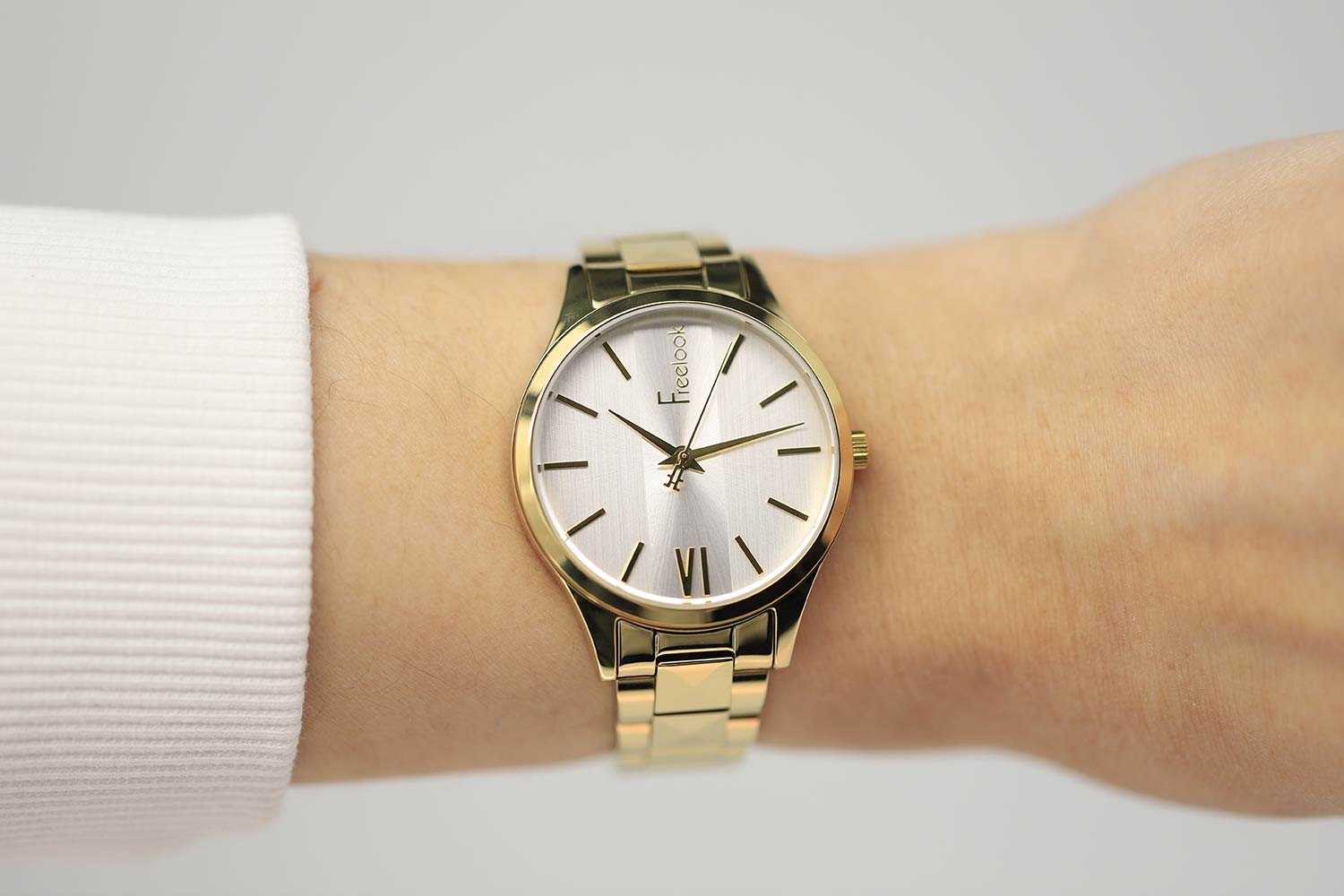 Классическое сочетание элементов этих кварцевых часов оценят по достоинству стильные девушки. Belle. Минималистичные женские часы в круглом полированном корпусе. Циферблат в средней части выполнен по технологии Sunray (солнечные лучи), остальная поверхность украшена вертикальным брашированием. Метки в виде штрихов и римской цифры 6. Надежный стальной браслет с раскладывающейся застежкой. Секундная стрелка, циферблат, рифленая заводная головка и застежка украшены фирменным логотипом Freelook.