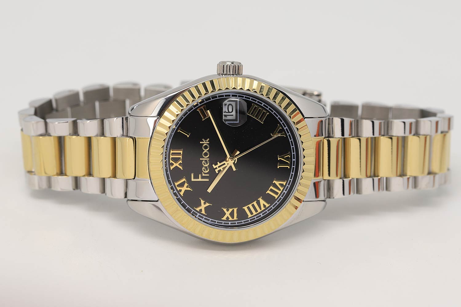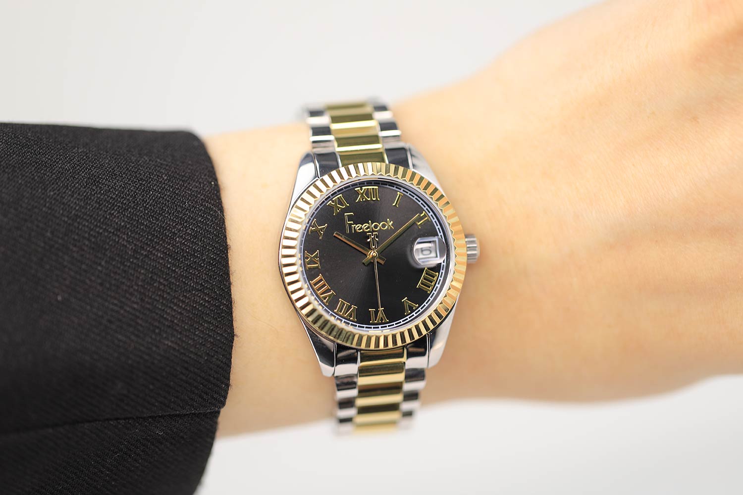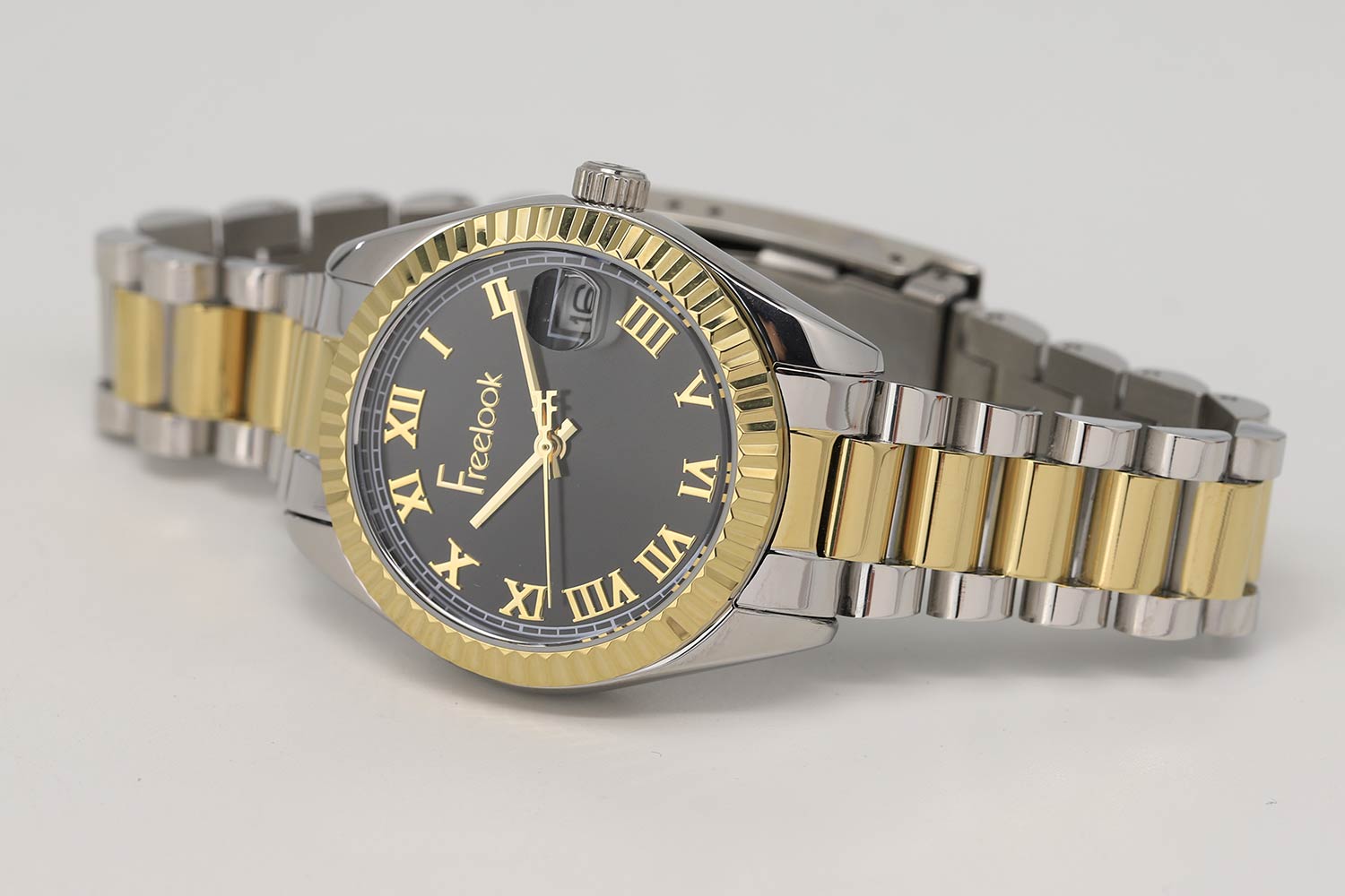 Прекрасные часы, сочетающие в себе неотразимость и эффектность линий. Belle. Женские часы на каждый день в круглом полированном корпусе с рифленым безелем. Циферблат выполнен по технологии Sunray (солнечные лучи). Окошко даты с увеличительным стеклом находится в положении 3 часа. Метки в виде римских цифр. Стальной браслет с раскладывающейся застежкой. Секундная стрелка, циферблат, рифленая заводная головка и застежка украшены фирменным логотипом Freelook.