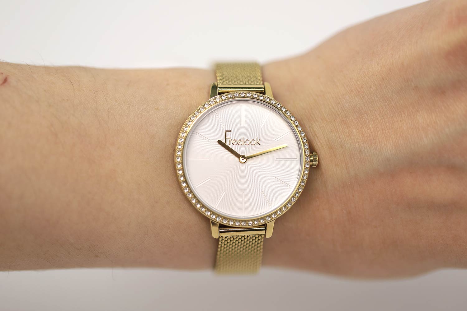 Часы покоряют блеском кристаллов Swarovski, которые украшают корпус этого стильного аксессуара. Lumiere. Круглый полированный корпус с безелем, аккуратно дополненным паве из кристаллов Swarovski. Циферблат украшен рельефным декоративным узором в виде концентрических окружностей. Закругленные прямоугольные стрелки. Метки в виде штрихов. Удобный и надежный стальной браслет миланского плетения с регулируемой застежкой. Циферблат, рифленая заводная головка и застежка украшены фирменным логотипом Freelook.