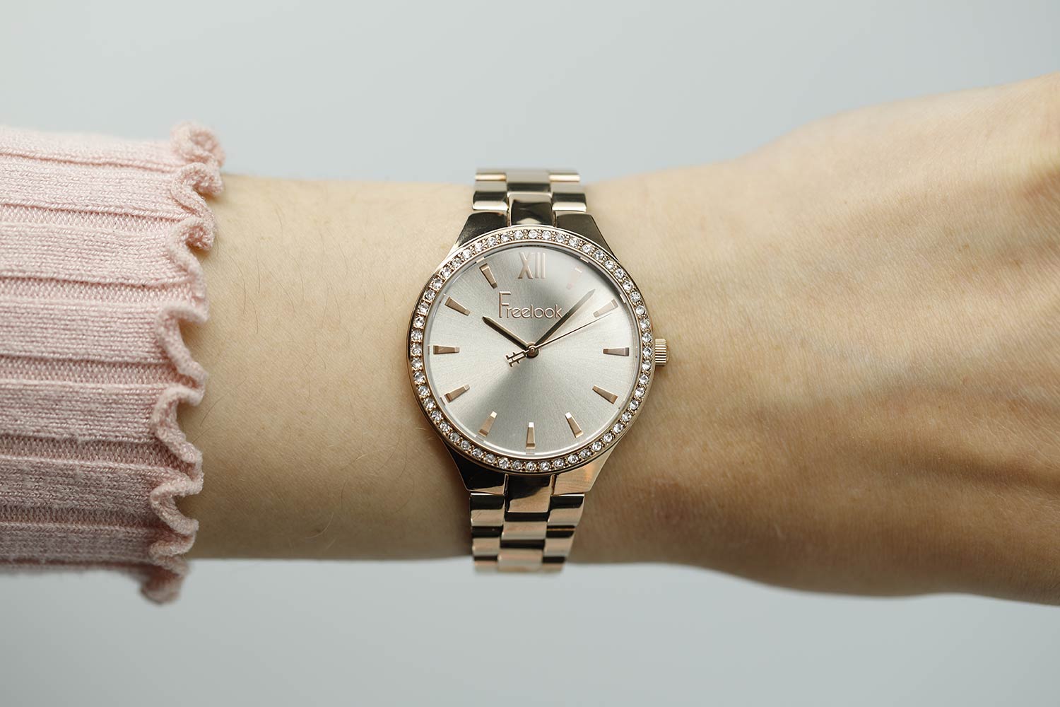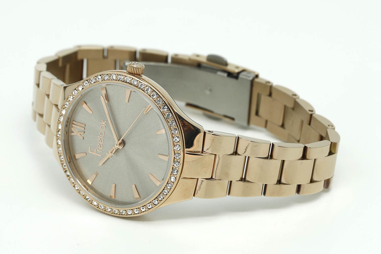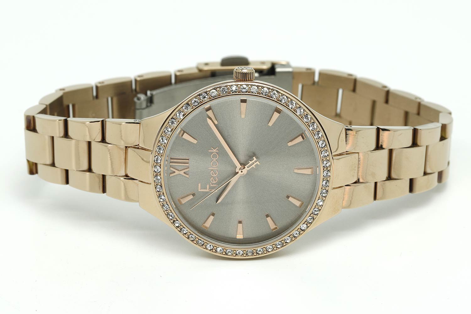 Этот превосходный аксессуар элегантно завершит ваш новый образ. Время стать красивее. Lumiere. Аккуратные повседневные женские часы на стальном браслете. Безель украшен паве из сверкающих кристаллов Swarovski. Циферблат выполнен по технологии Sunray (солнечные лучи). Метки в виде штрихов, 12-ти часовая метка в виде римской цифры. Заостренные прямоугольные стрелки. Надежный стальной браслет с раскладывающейся застежкой. Циферблат, секундная стрелка, рифленая заводная головка и застежка украшены фирменным логотипом Freelook.