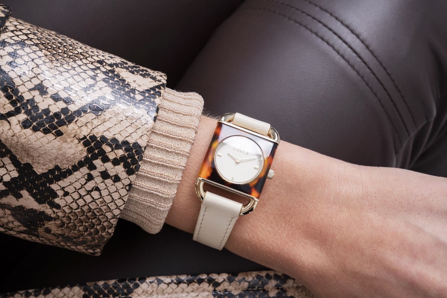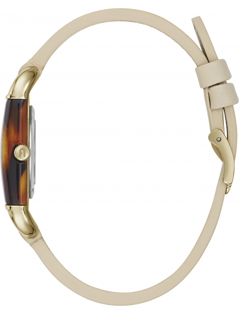 Интересный дизайн этих часов не оставит равнодушной ни одну модную девушку. Дизайнерские кварцевые часы Arco Square. Квадратный стальной корпус с вставками виде янтарного камня. Метки в виде штрихов с фирменной аркой в положении 12 часов. Закругленные стрелки. Рифленая заводная головка с фирменной аркой Furla. Ушки крепления браслета к корпусу в виде открытой арки выполнены из полированной стали. Ремешок из натуральной итальянской кожи с рельефной аркой. Классическая застежка с логотипом Furla.