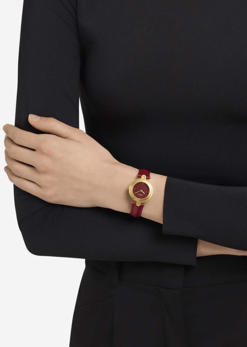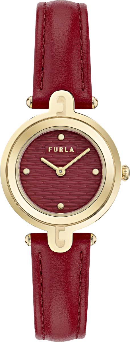 Женские кварцевые наручные часы Arch-Bar 28. Круглый стальной корпус. Текстурированный циферблат с накладными метками в виде точек. Закругленные прямоугольные стрелки в стиле Baton. Заводная головка украшена фирменной аркой Furla. Кожаный ремешок с классической застежкой.