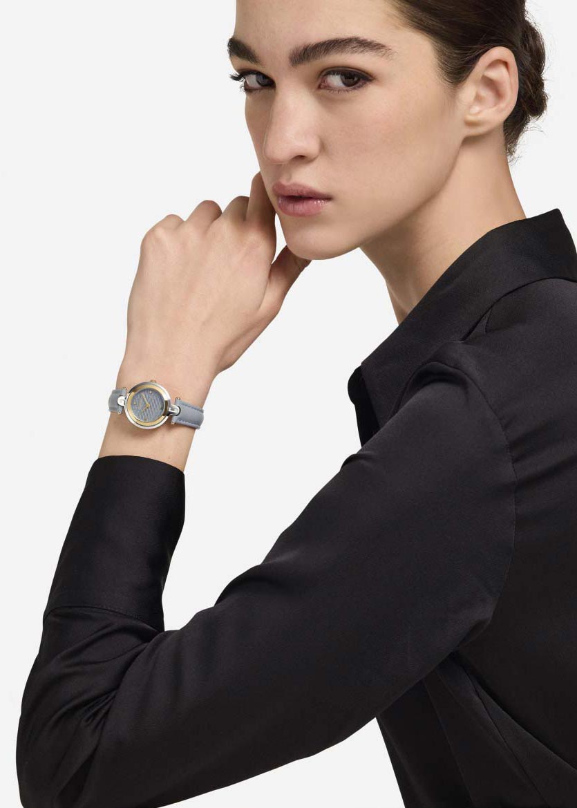 Женские кварцевые наручные часы Arch-Bar 28. Круглый стальной корпус. Текстурированный циферблат с накладными метками в виде точек. Закругленные прямоугольные стрелки в стиле Baton. Заводная головка украшена фирменной аркой Furla. Кожаный ремешок с классической застежкой.