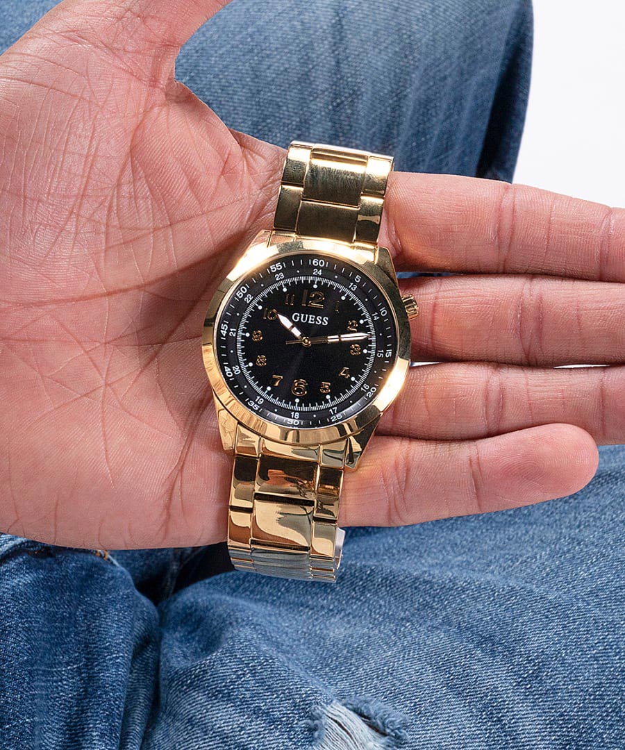 Этот аксессуар от Guess не только идеально дополнит ваш образ, но и подчеркнет ваш изысканный вкус. Max. Мужские часы с круглым стальным корпусом. Смещенная рифленая заводная головка. Стальной браслет с раскладывающейся застежкой.