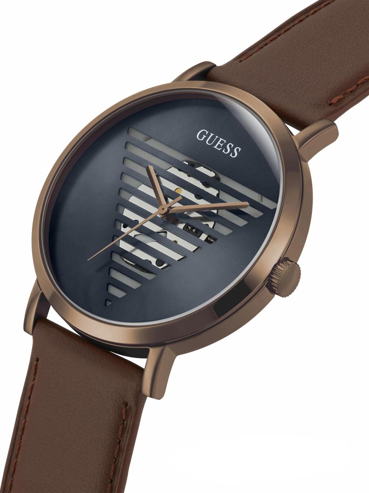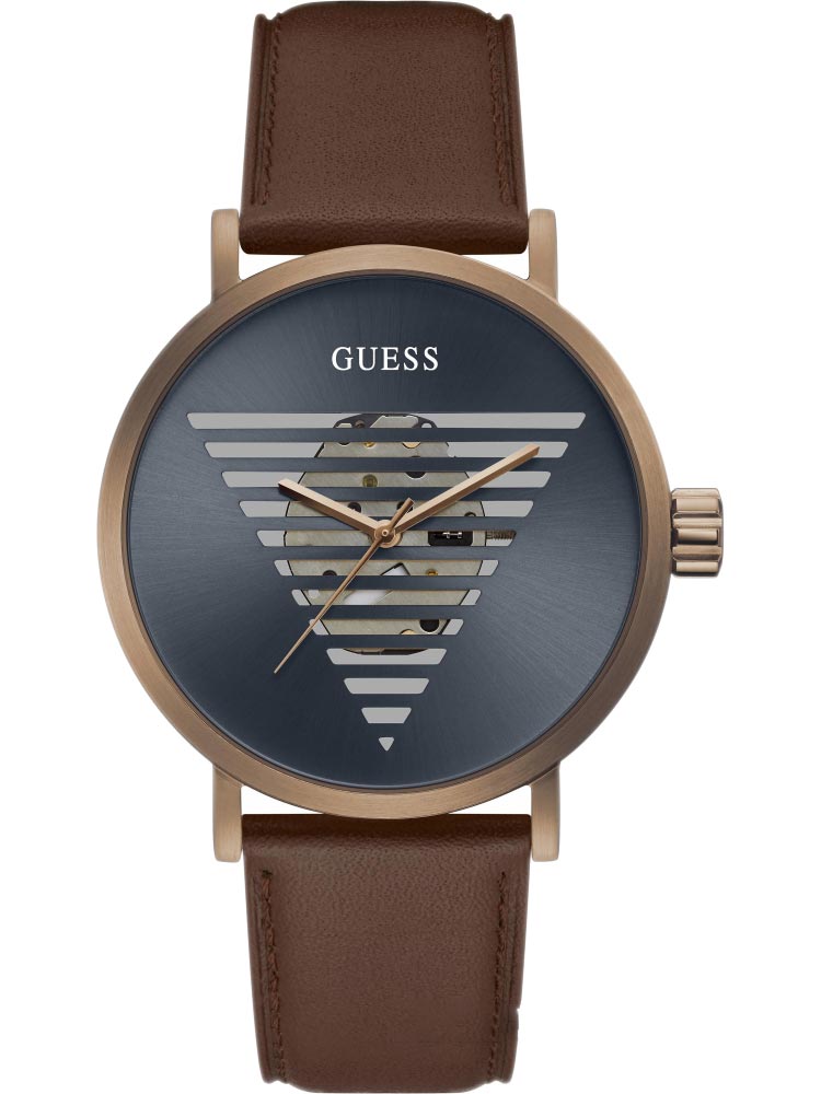 Этот аксессуар от Guess не только идеально дополнит ваш образ, но и подчеркнет ваш изысканный вкус. Idol. Мужские часы с круглым стальным корпусом. Циферблат выполнен по технологии Sunray (солнечные лучи). Рифленая заводная головка. Ремешок с классической застежкой.