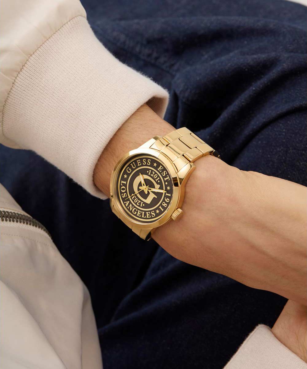 Мужские наручные часы Collegiate G. Круглый стальной корпус. Циферблат без меток выполнен по технологии Sunray (солнечные лучи). Рифленая заводная головка. Браслет с раскладывающейся застежкой.