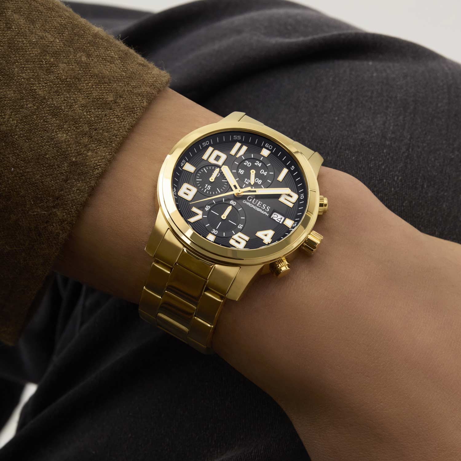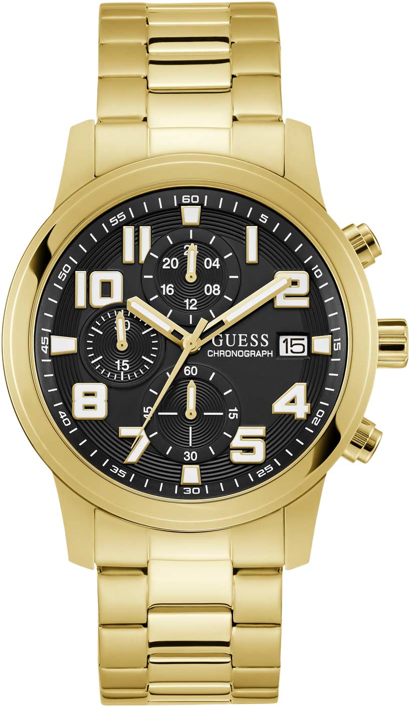 Мужские часы-хронограф с секундомером Atticus. 12-ти и 24-х часовой формат времени. Круглый стальной корпус. Циферблат с метками в виде арабских цифр и штрихов. Окошко даты находится в положении 3 часа. Рифленая заводная головка. Завинчивающаяся задняя крышка. Браслет с раскладывающейся застежкой.