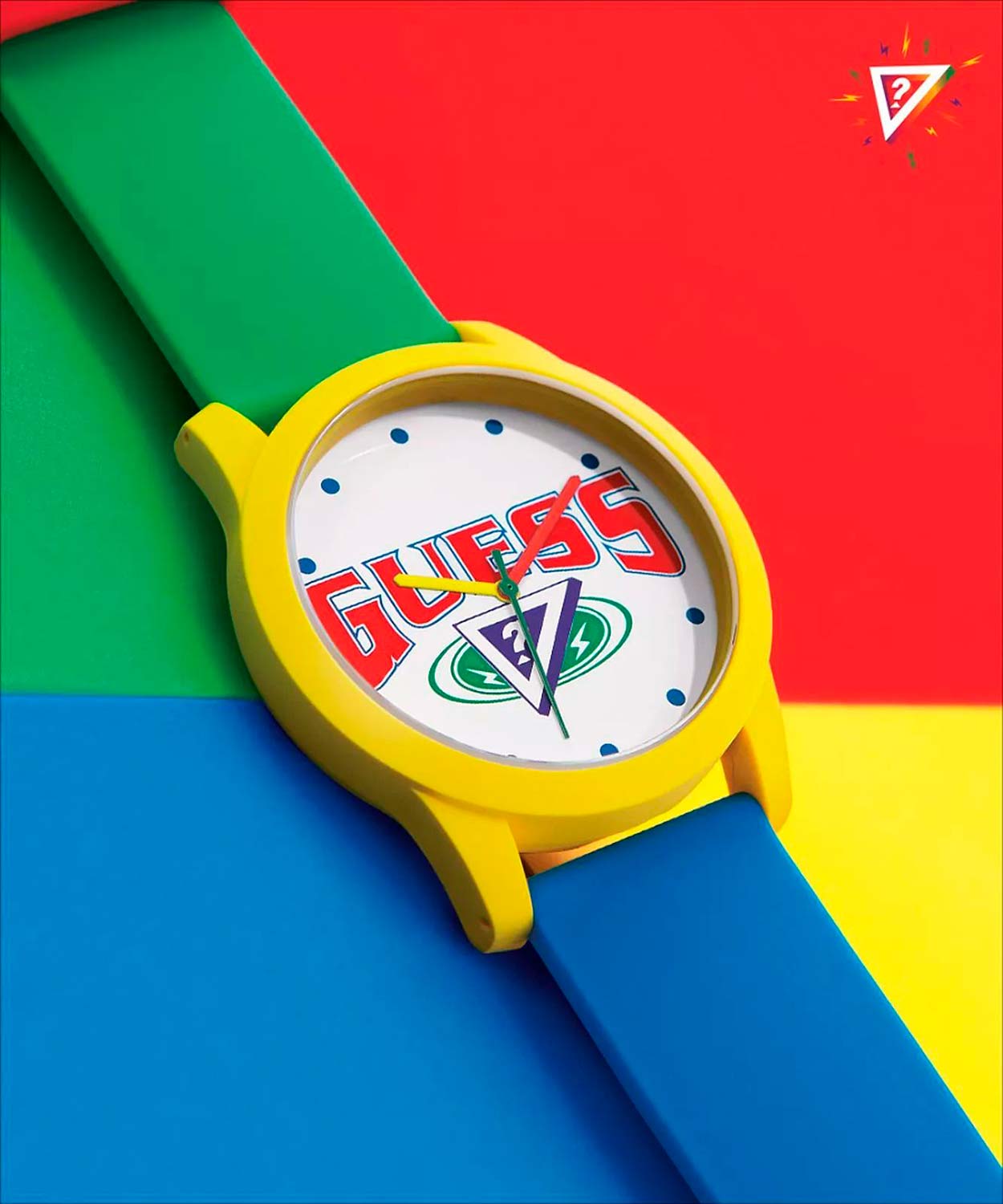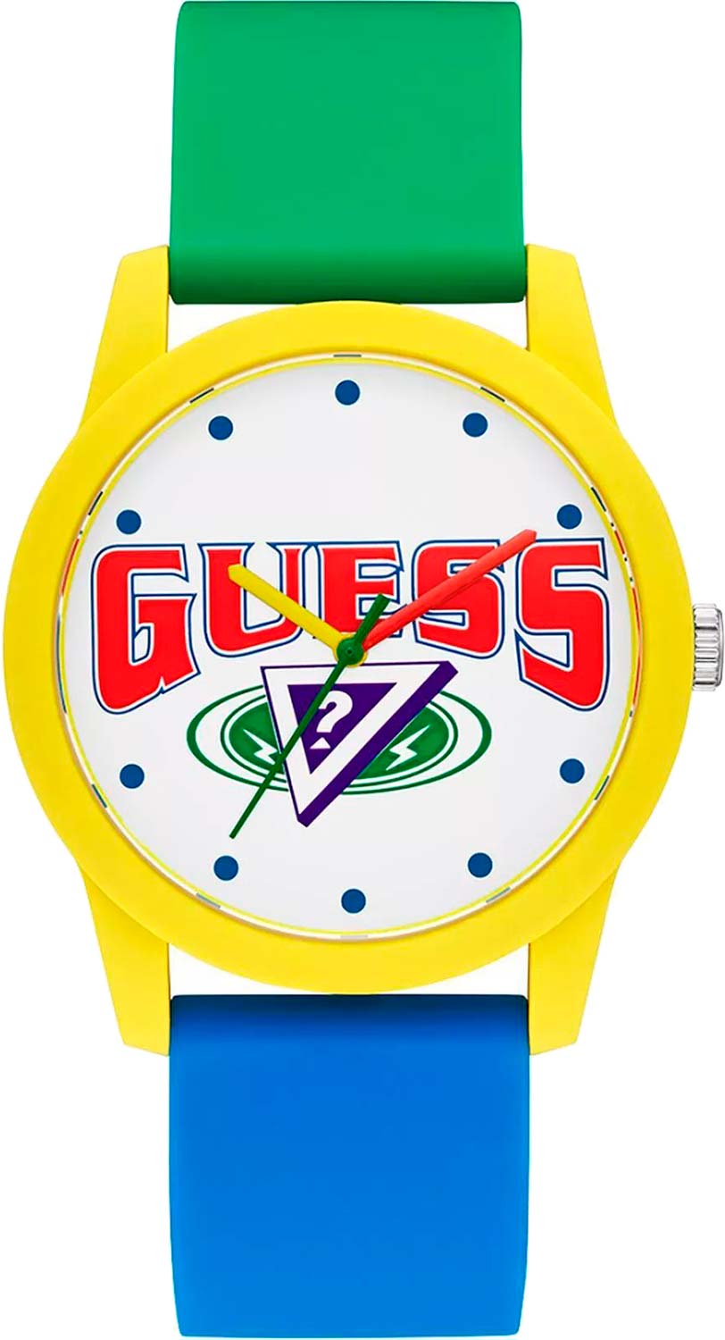 Яркие оригинальные часы сделают каждый момент вашей жизни таким же уникальным, как они сами. Унисекс. Модные кварцевые часы, вдохновленные творчеством колумбийского музыканта Джея Бальвина. Круглый корпус из желтого поликарбоната. Циферблат с метками в виде точек декорирован ярким крупным логотипом Guess и защищен прочным минеральным стеклом. Разноцветные стрелки. Рифленая заводная головка. Двухцветный силиконовый ремешок с классической застежкой.