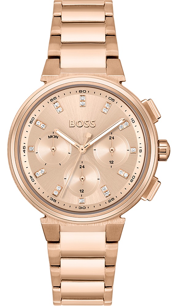 Стильные женские часы покорят вас интригующим блеском камней и подчеркнут вашу утонченность. Женские кварцевые часы. 12-ти и 24-х часовой формат времени. Метки в виде штрихов. Циферблат украшен кристаллами. Функция дня недели вынесена на отдельный циферблат. Рифленая заводная головка. Стальной браслет с раскладывающейся застежкой.