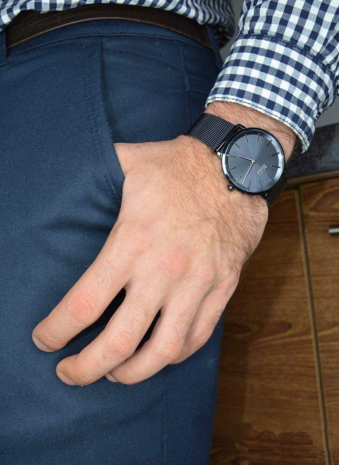 Классические контуры корпуса и бесподобный браслет миланского плетения. Перед таким выбором устоять невозможно! Skyliner. Мужские часы с круглым корпусом. Циферблат с метками в виде штрихов выполнен по технологии Sunray (солнечные лучи). Браслет миланского плетения.