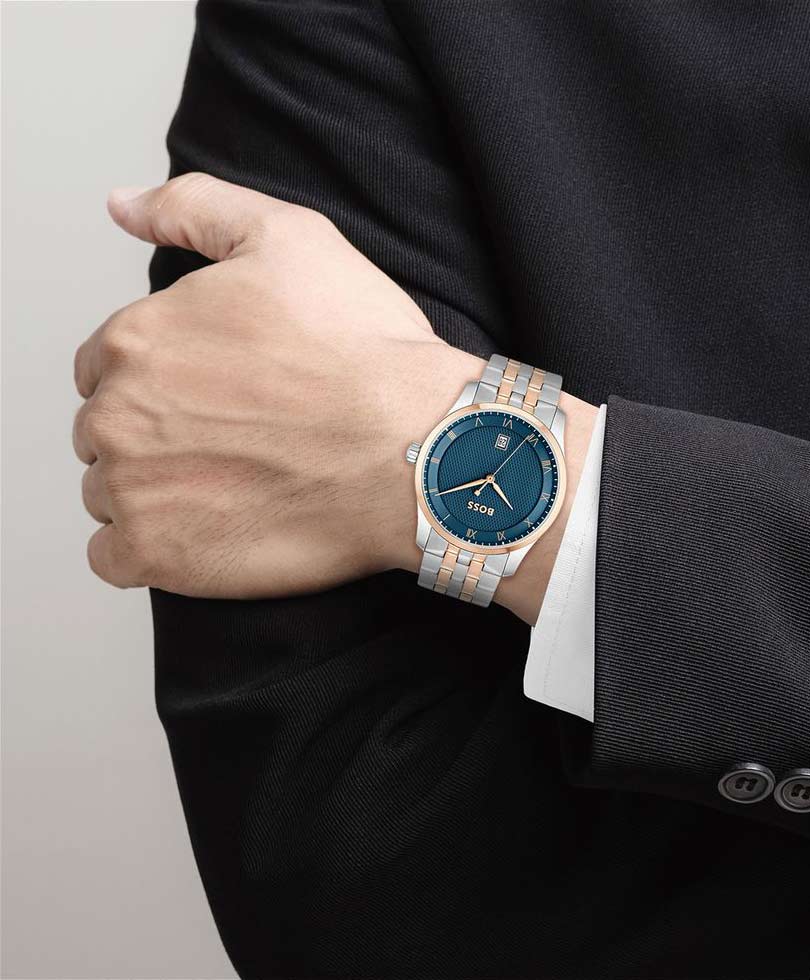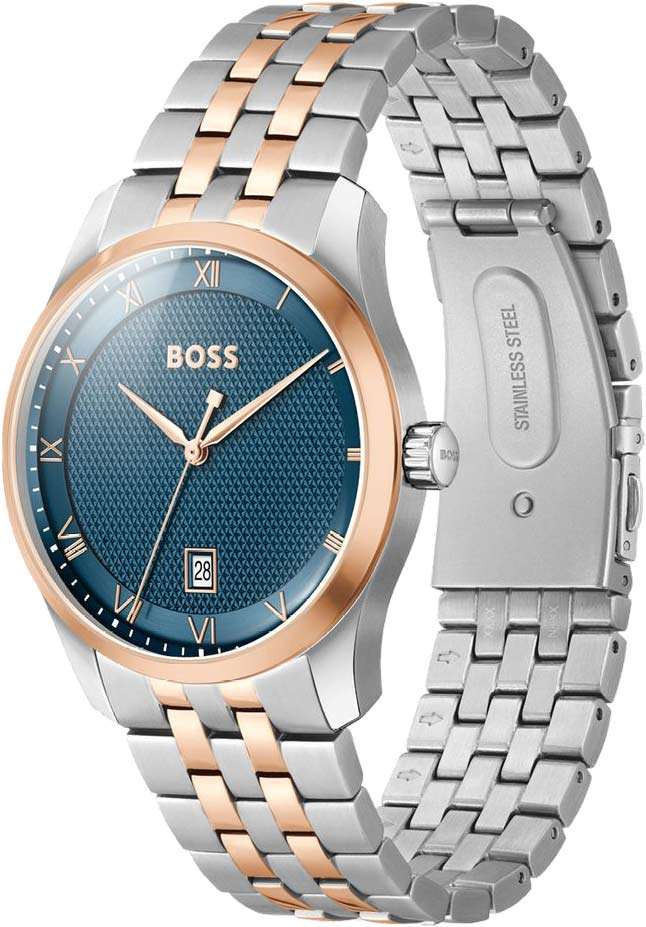 Лаконичный аксессуар с классическими чертами - незаменимый атрибут успешных людей. Мужские наручные часы. Круглый стальной корпус. Гильошированный циферблат украшен логотипом бренда. Метки в виде римских цифр. Окошко даты находится в положении 6 часов. Рифленая заводная головка. Браслет с раскладывающейся застежкой.