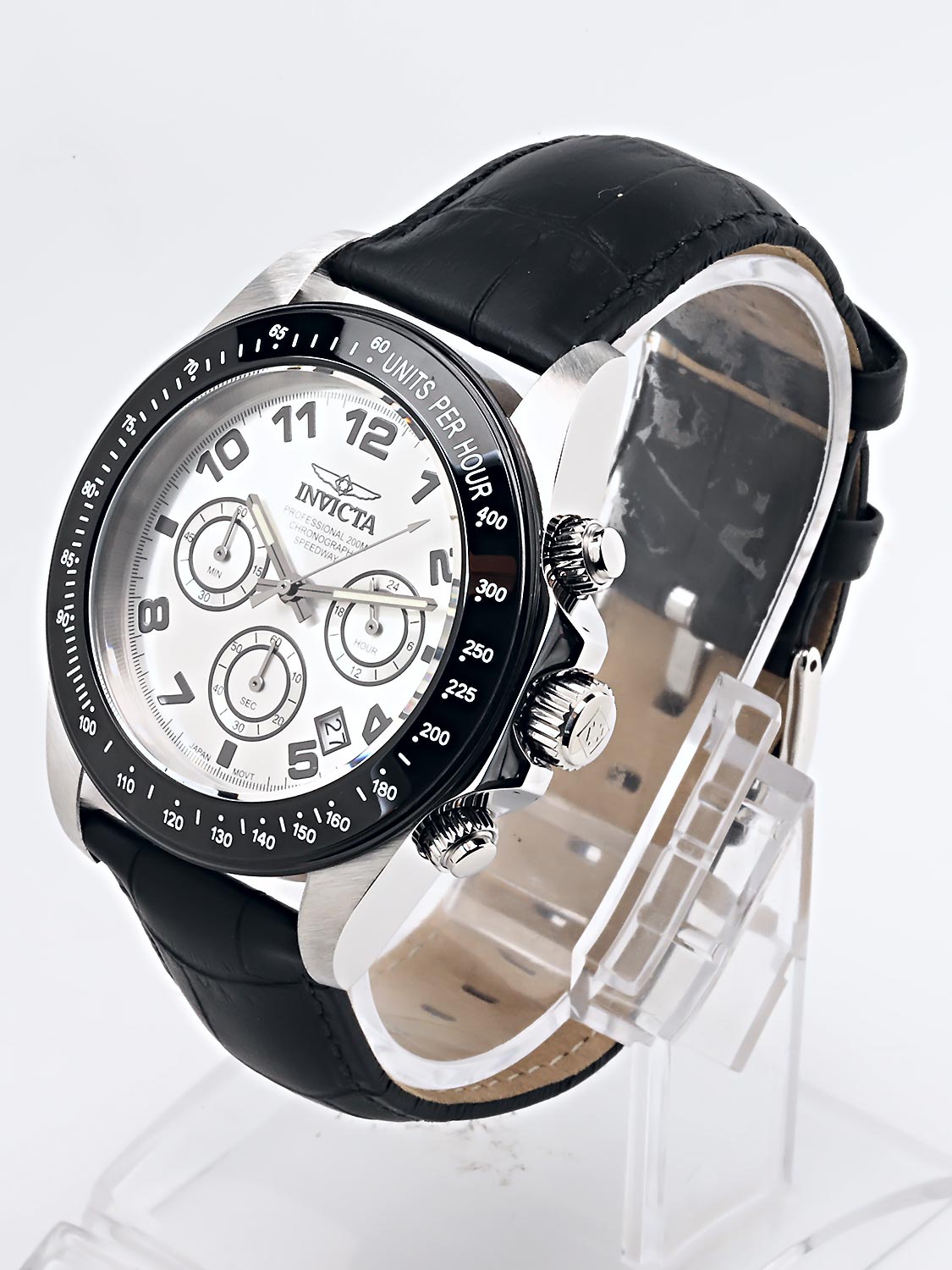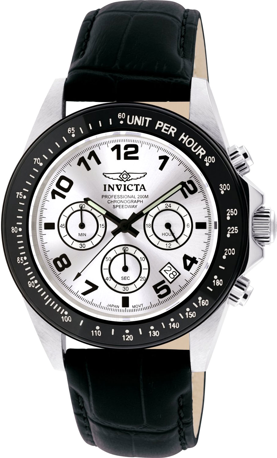 Коллекция Invicta Speedway, отражающая время с максимальной утонченностью и при этом учитывающая как потребности активного спортсмена, так и без труда впишется в любое путешествие. Часы Speedway станут неотъемлемым атрибутом любой деятельности, позволяя им влиться в вашу спортивную и рабочую жизнь. Speedway. Кварцевые оригинальные наручные часы-хронограф с секундомером и тахиметром. Круглый стальной корпус c сатинированной поверхностью. Циферблат выполнен по технологии Sunray (солнечные лучи). Заостренные прямоугольные стрелки в стиле Baton с белым люминесцентным покрытием Tritnite, которое светится в темноте после непродолжительной зарядки на свету. Метки в виде арабских цифр. Окошко даты находится между часовыми отметками 4 и 5. Завинчивающаяся рифленая заводная головка с защитой. Завинчивающаяся задняя крышка. Удобный кожаный ремешок с классической застежкой. Производитель оставляет за собой право вносить изменения во внешний вид часов. Уточняйте при заказе, какой вариант в наличии в данный момент.