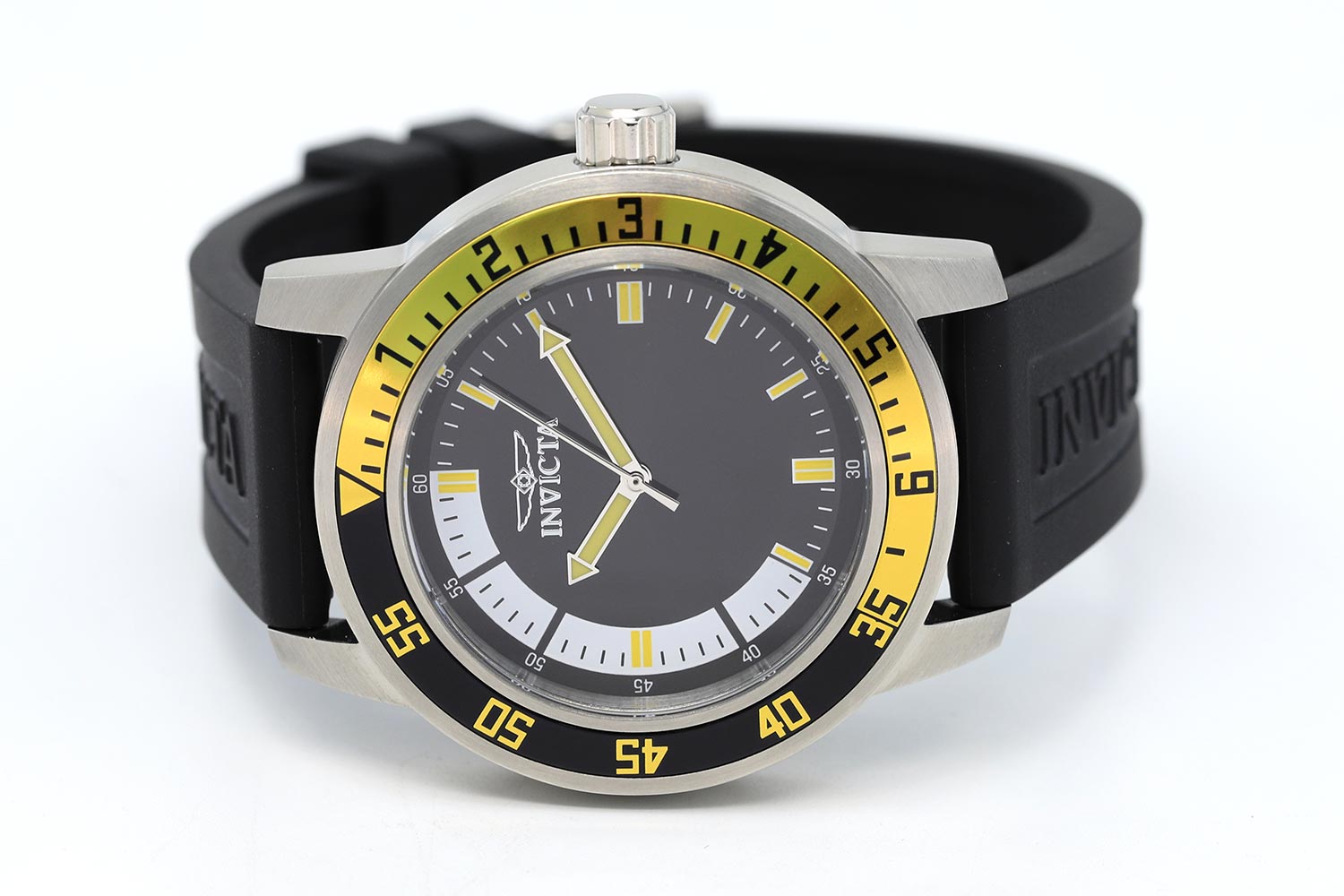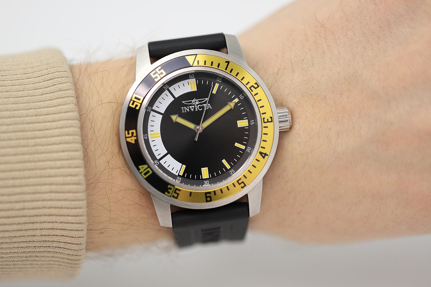 Будь вы на вечеринке на Ибице или на рок концерте - Invicta всегда возьмет правильный вектор течения вашей жизни. Specialty. Мужские часы. Циферблат с метками в виде штрихов выполнен по технологии Sunray (солнечные лучи). Метки и стрелки с зеленым люминесцентным покрытием Tritnite, которое светится в темноте после непродолжительной зарядки на свету. Ремешок с классической застежкой. Производитель оставляет за собой право вносить изменения во внешний вид часов. Уточняйте при заказе.