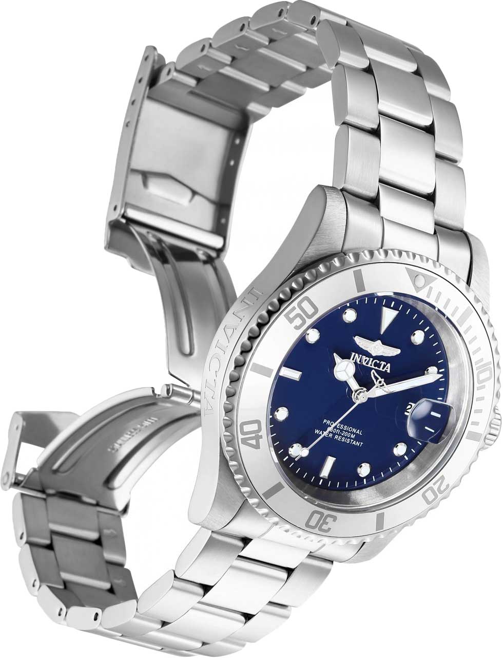 Мужские часы Pro Diver. Циферблат с метками в виде штрихов и точек. Метки и стрелки с белым люминесцентным покрытием Tritnite, которое светится в темноте после непродолжительной зарядки на свету.
