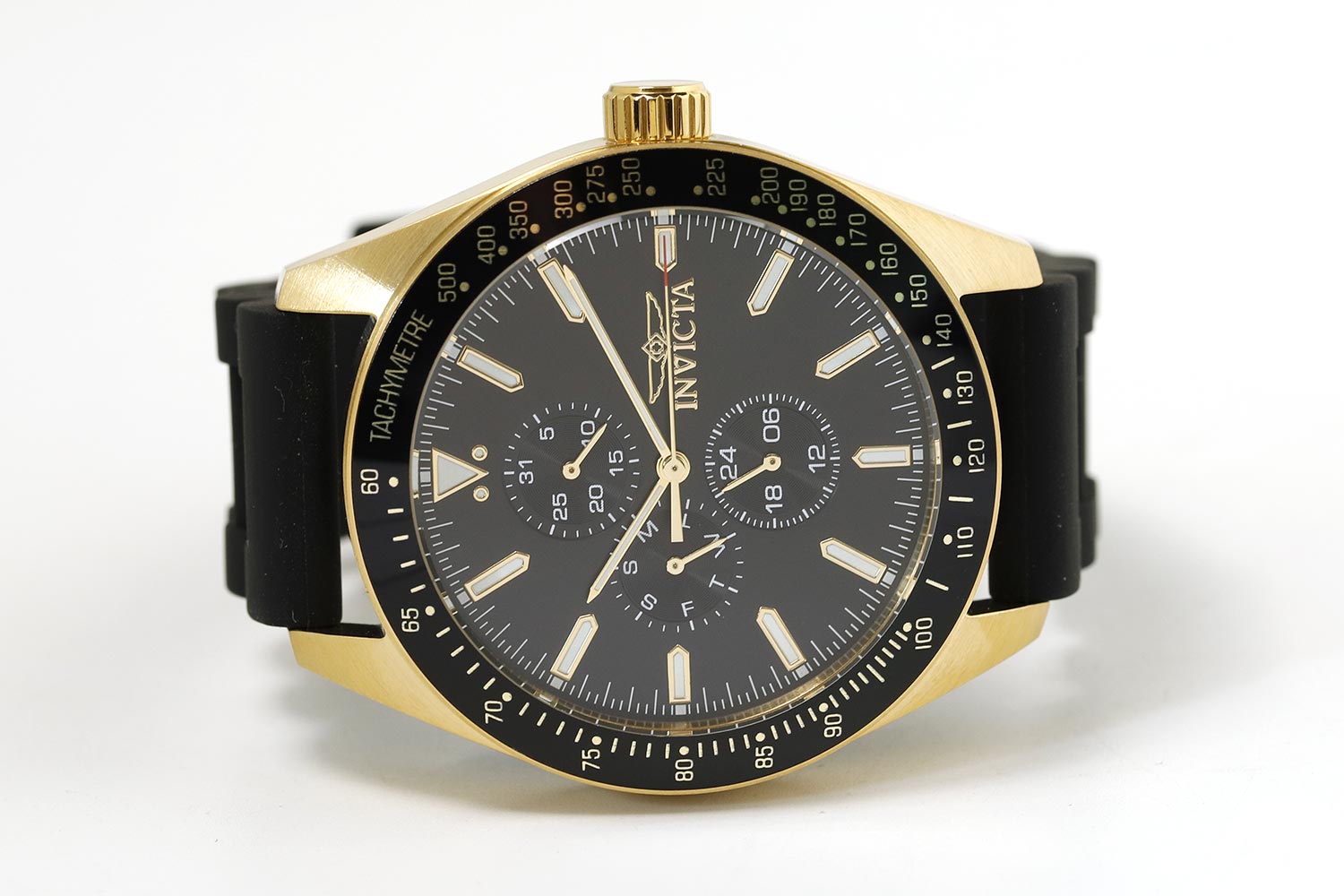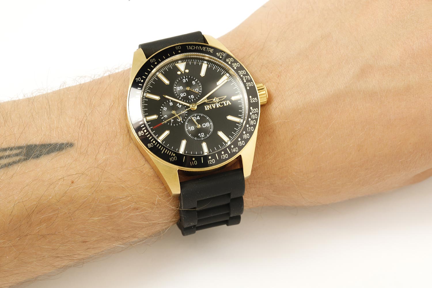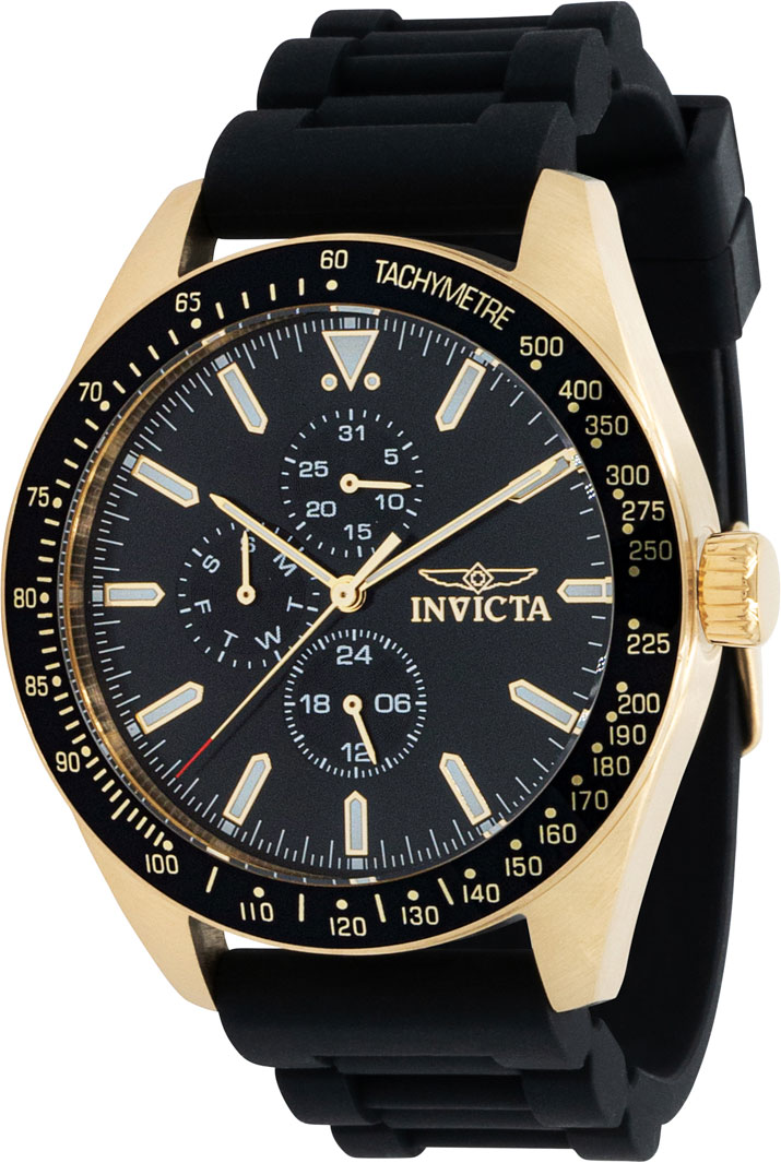 Часы Invicta Aviator получили разрешение на взлет. Готовые к взлету на полном ходу, с дизайном в честь истории авиационного стиля, каждые часы - это высокоточная машина, ожидающая своего пилота. Будь то короткая поездка или путешествие длиною в жизнь, Invicta Aviator - ваш надежный инструмент на земле или в небе. Aviator. Мужские наручные часы с тахиметром. В механизме 2 камня. Круглый корпус. Узкие заостренные прямоугольные стрелки в стиле Baton. Метки в виде штрихов. Метки и стрелки с белым люминесцентным покрытием Tritnite, которое светится в темноте после непродолжительной зарядки на свету. 12-ти и 24-х часовой формат времени, дата и день недели отображаются на отдельных циферблатах. Рифленая заводная головка. Завинчивающаяся задняя крышка. Удобный силиконовый ремешок с классической застежкой. Производитель оставляет за собой право вносить изменения во внешний вид часов. Уточняйте при заказе, какой вариант в наличии в данный момент.
