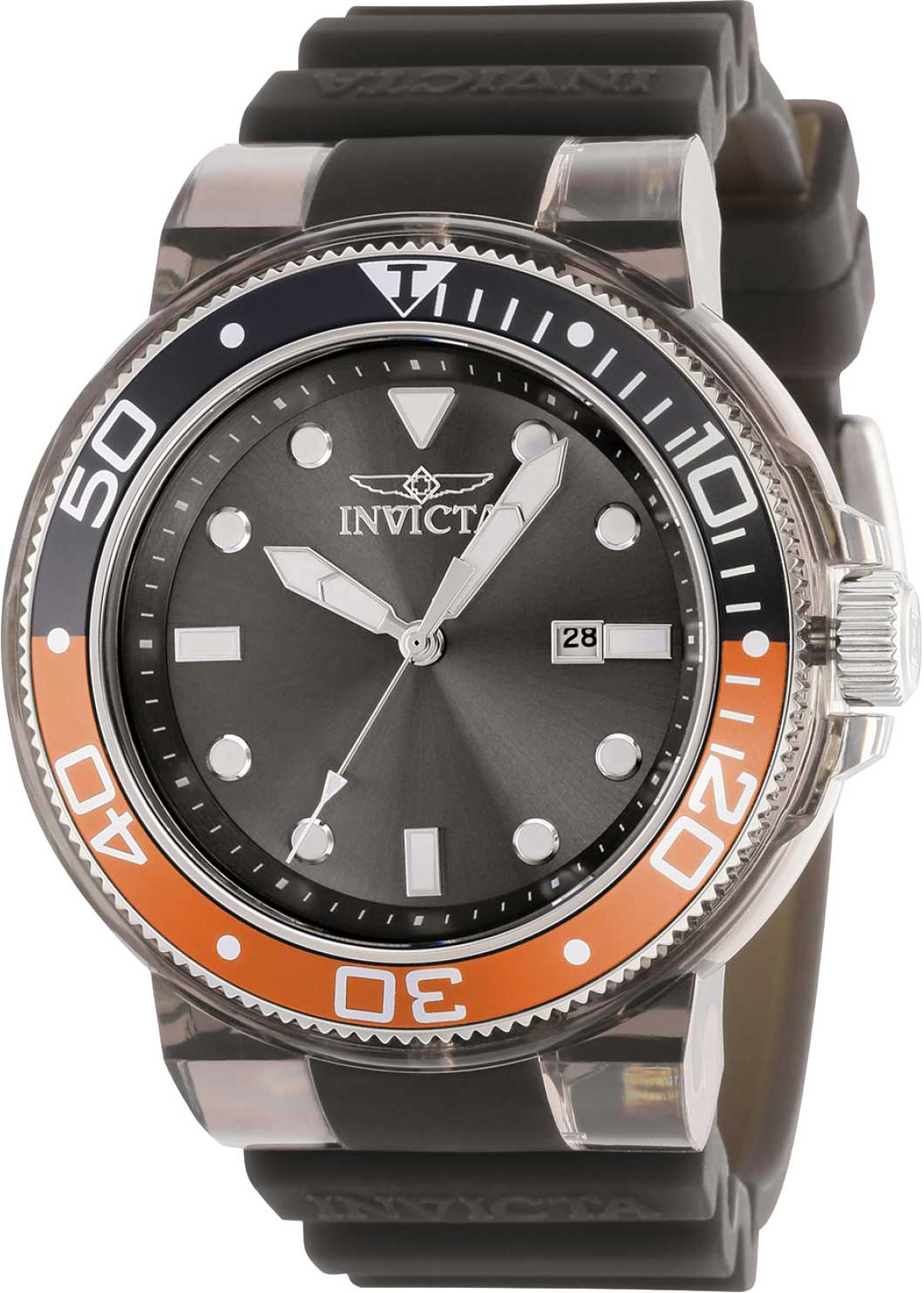 Мужские часы Pro Diver. Циферблат выполнен по технологии Sunray (солнечные лучи). Метки в виде штрихов и точек. Метки и стрелки с белым люминесцентным покрытием New Lite, которое светится в темноте после непродолжительной зарядки на свету.