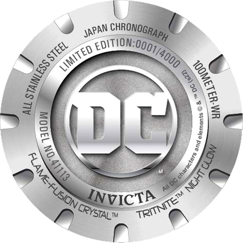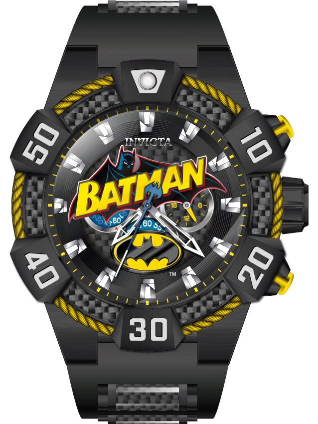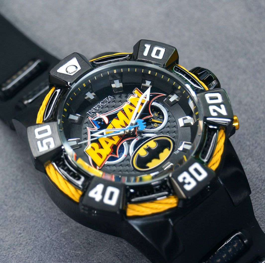 Яркие часы позволят вам почувствовать себя настоящим супергероем. DC Comics Batman. Часы-хронограф с секундомером. Лимитированная серия - 4000 экземпляров. Круглый стальной корпус с минеральным стеклом. Массивный безель с минутной шкалой украшен вставками из карбона и троса с IP покрытием. Циферблат стилизован под тематику коллекции. Мечевидные стрелки в стиле Sword. Метки в виде штрихов. Рифленая заводная головка. Завинчивающаяся задняя крышка с гравировкой. Удобный силиконовый ремешок с классической застежкой.