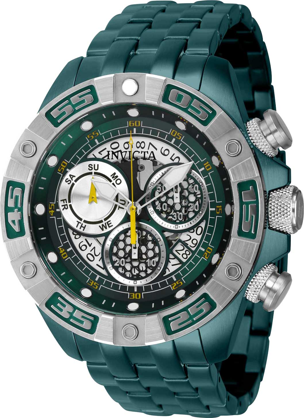 Массивный хронограф со спортивными нотками станет стильной деталью мужского образа. Часы-хронограф с секундомером. Циферблат с метками в виде точек. Метки и стрелки с белым люминесцентным покрытием Tritnite, которое светится в темноте после непродолжительной зарядки на свету. Окошко даты находится в положении между отметками 4 и 5 часов. День недели вынесен на отдельный циферблат. Заводная головка с защитой. Браслет с раскладывающейся застежкой. Застежка с системой блокировки. Производитель оставляет за собой право вносить изменения во внешний вид часов. Уточняйте при заказе, какой вариант в наличии в данный момент.