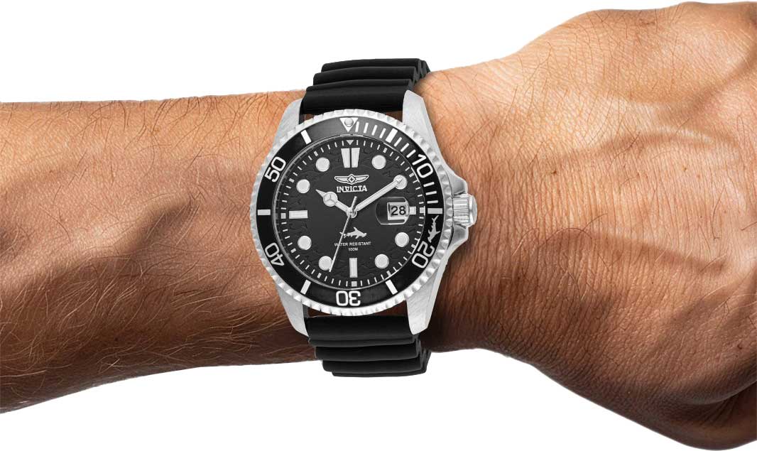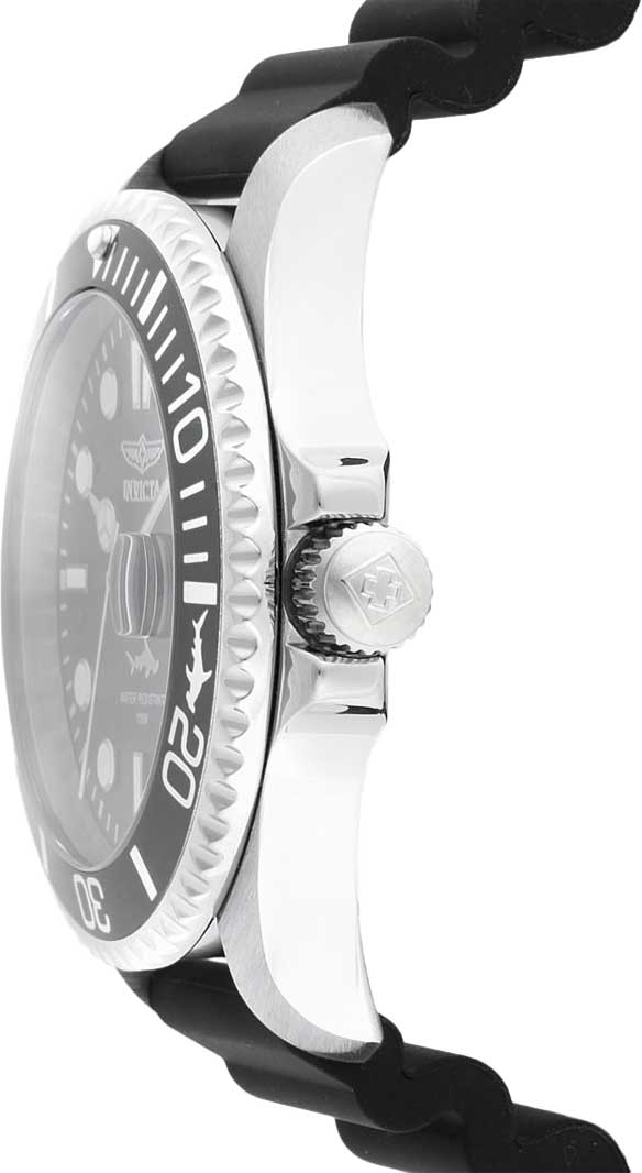Мужские часы Pro Diver. Циферблат с метками в виде штрихов и точек. Метки и стрелки с белым люминесцентным покрытием Tritnite, которое светится в темноте после непродолжительной зарядки на свету.