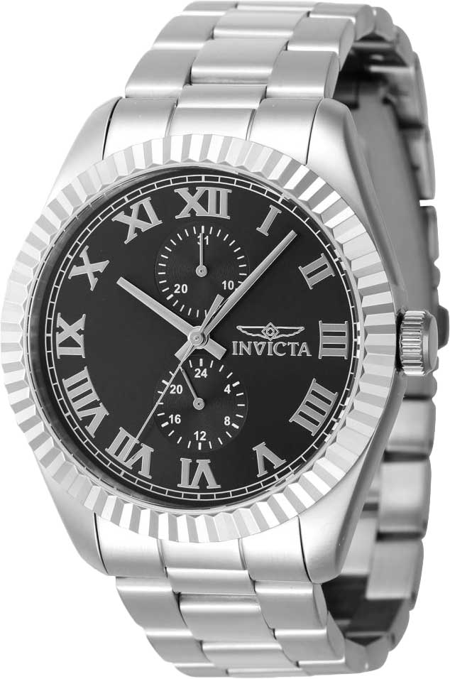 Мужские часы Specialty. 12-ти и 24-х часовой формат времени и дата вынесены на отдельные циферблаты. Циферблат с метками в виде римских цифр выполнен по технологии Sunray (солнечные лучи). Безель с алмазной гранью. Браслет с раскладывающейся застежкой. Производитель оставляет за собой право вносить изменения во внешний вид часов. Уточняйте при заказе.
