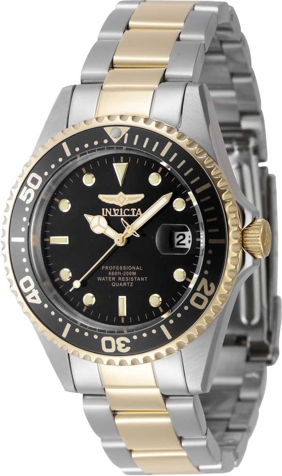 Мужские часы Pro Diver. Циферблат с метками в виде штрихов и точек. Метки и стрелки с зеленым люминесцентным покрытием Tritnite, которое светится в темноте после непродолжительной зарядки на свету.