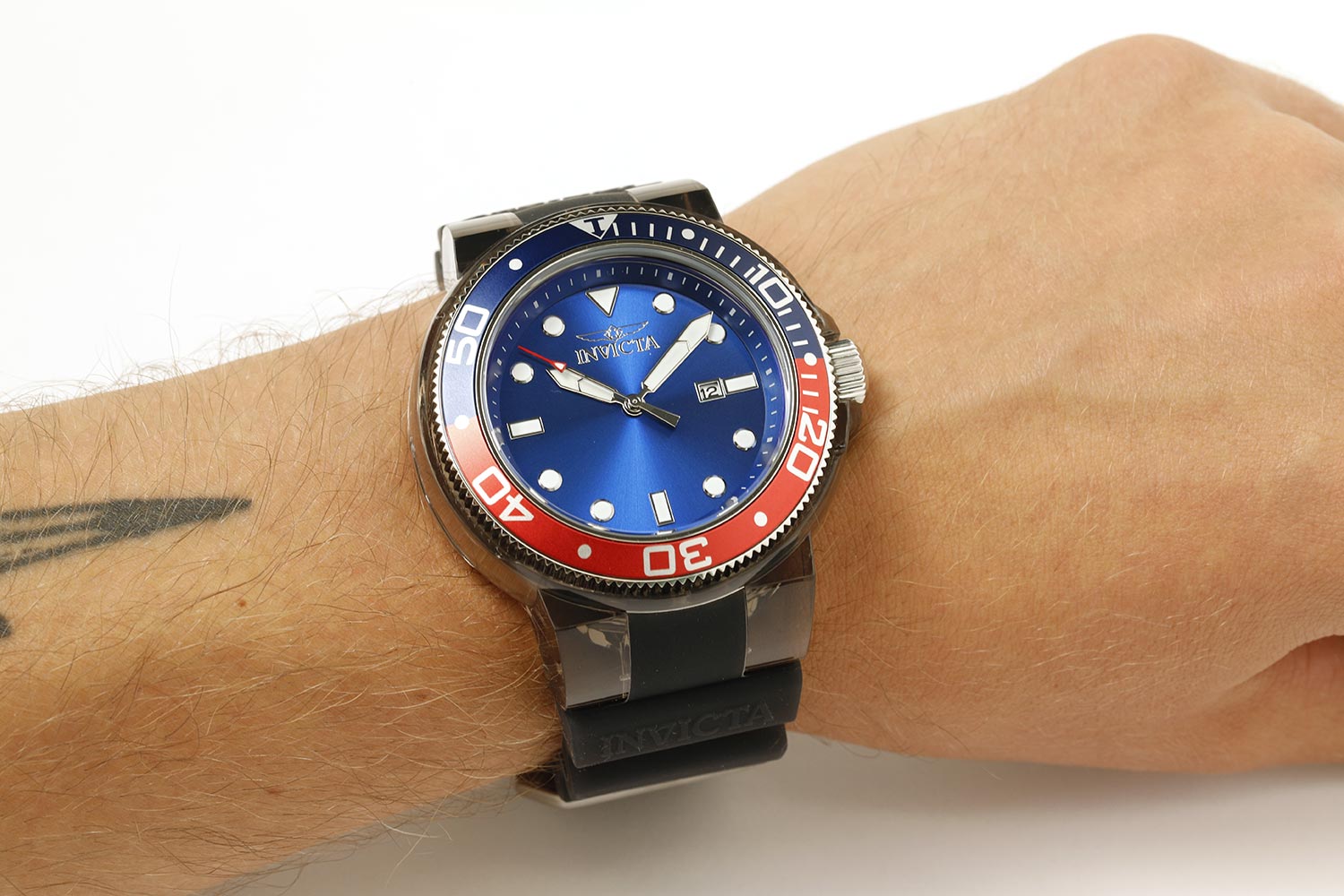 Загляните за любую грань под надежным руководством часов Invicta Pro Diver. Стильная классика, внутреннее устройство которой выполнено с использованием различных вариантов сложных решений. Благодаря уверенному ходу, стойкости, с которой функционируют эти часы, Pro Diver являются квинтэссенцией качества. Pro Diver. Кварцевые оригинальные наручные часы. Круглый корпус c гладкой поверхностью. Рифленый алюминиевый вращающийся безель с минутной шкалой. Циферблат выполнен по технологии Sunray (солнечные лучи). Мечевидные стрелки в стиле Sword. Метки в виде штрихов и точек. Метки и стрелки с белым люминесцентным покрытием New Lite, которое светится в темноте после непродолжительной зарядки на свету. Окошко даты находится в положении 3 часа. Рифленая заводная головка с защитой. Прозрачный силиконовый ремешок с классической застежкой. Производитель оставляет за собой право вносить изменения во внешний вид часов. Уточняйте при заказе, какой вариант в наличии в данный момент.