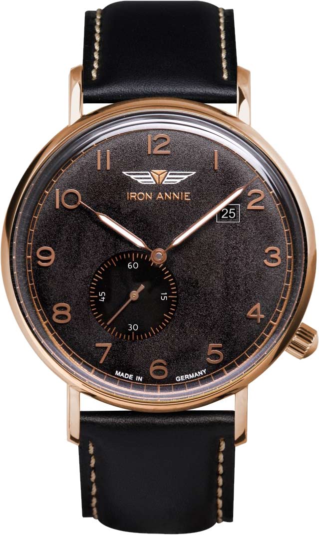 Качественный аксессуар с утонченным и самобытным дизайном будет отлично смотреться как в повседневной жизни, так и на серьезном мероприятии со строгим костюмом. Мужские наручные часы. Круглый стальной корпус. В механизме 5 камней. Циферблат с метками в виде арабских цифр защищен минеральным усиленным стеклом. Секундная стрелка вынесена на отдельный циферблат. Окошко даты находится в положении 2 часа. Смещенная рифленая заводная головка. Кожаный ремешок с классической застежкой.