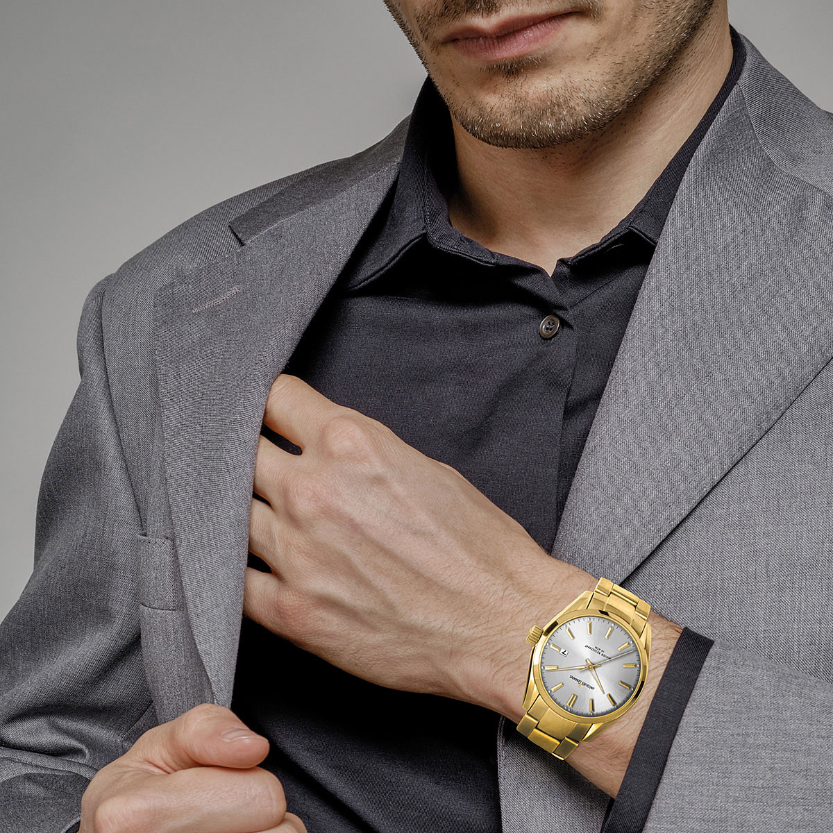Классические черты и стильный дизайн этих часов станут залогом успешного мужчины. Derby. Циферблат выполнен по технологии Sunray (солнечные лучи). Метки в виде штрихов. Окошко даты. Рифленая заводная головка. Круглый корпус. Браслет с раскладывающейся застежкой.