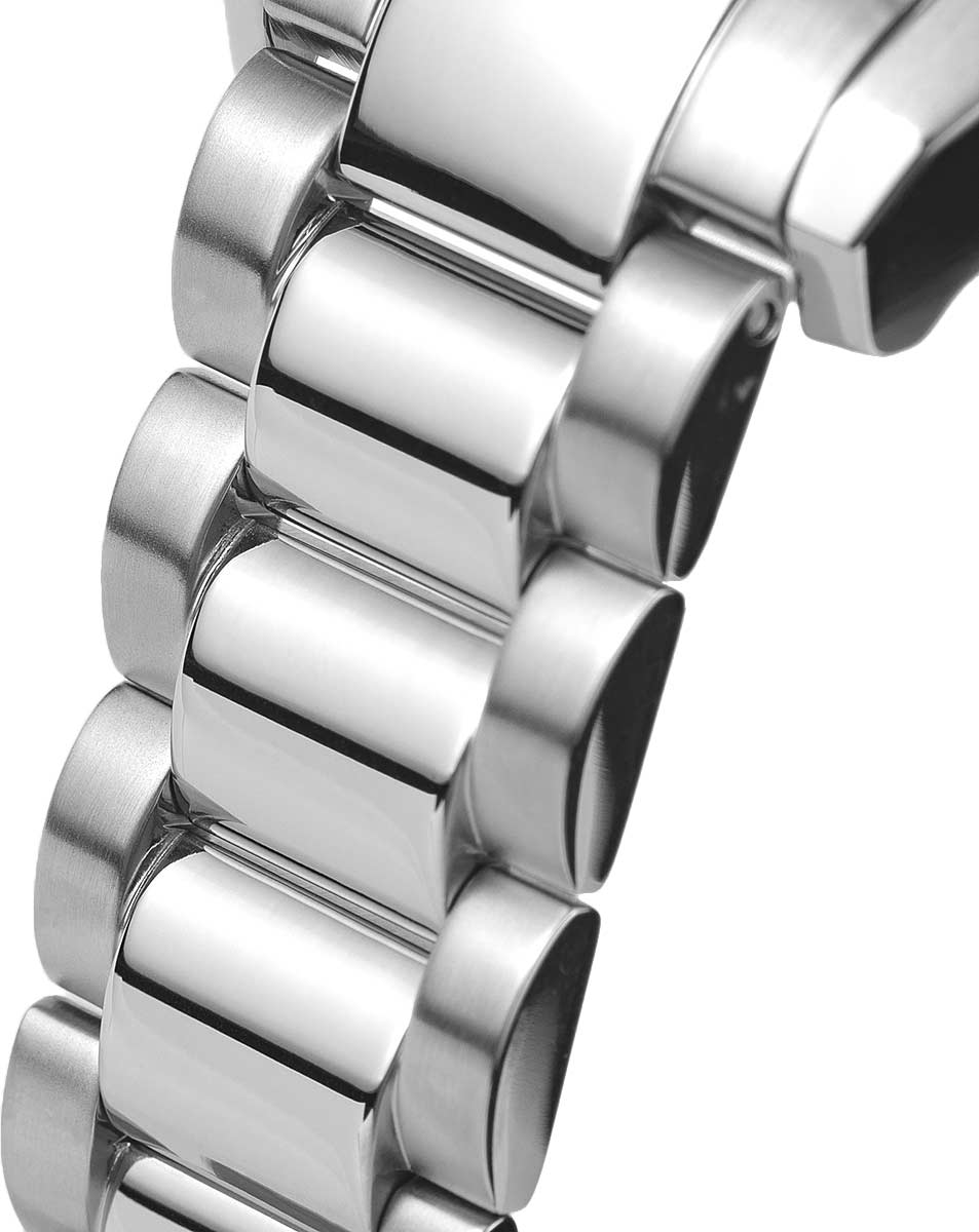 Функциональные часы на стальном браслете отлично подойдут для повседневного образа активного мужчины. Liverpool. Часы-хронограф с секундомером. 12-ти и 24-х часовой формат времени. Метки в виде штрихов и арабских цифр. Окошко даты находится между отметками 4 и 5 часов. Рифленая заводная головка с защитой украшена фирменным логотипом Jacques Lemans. Браслет с раскладывающейся застежкой. Застежка с системой блокировки.