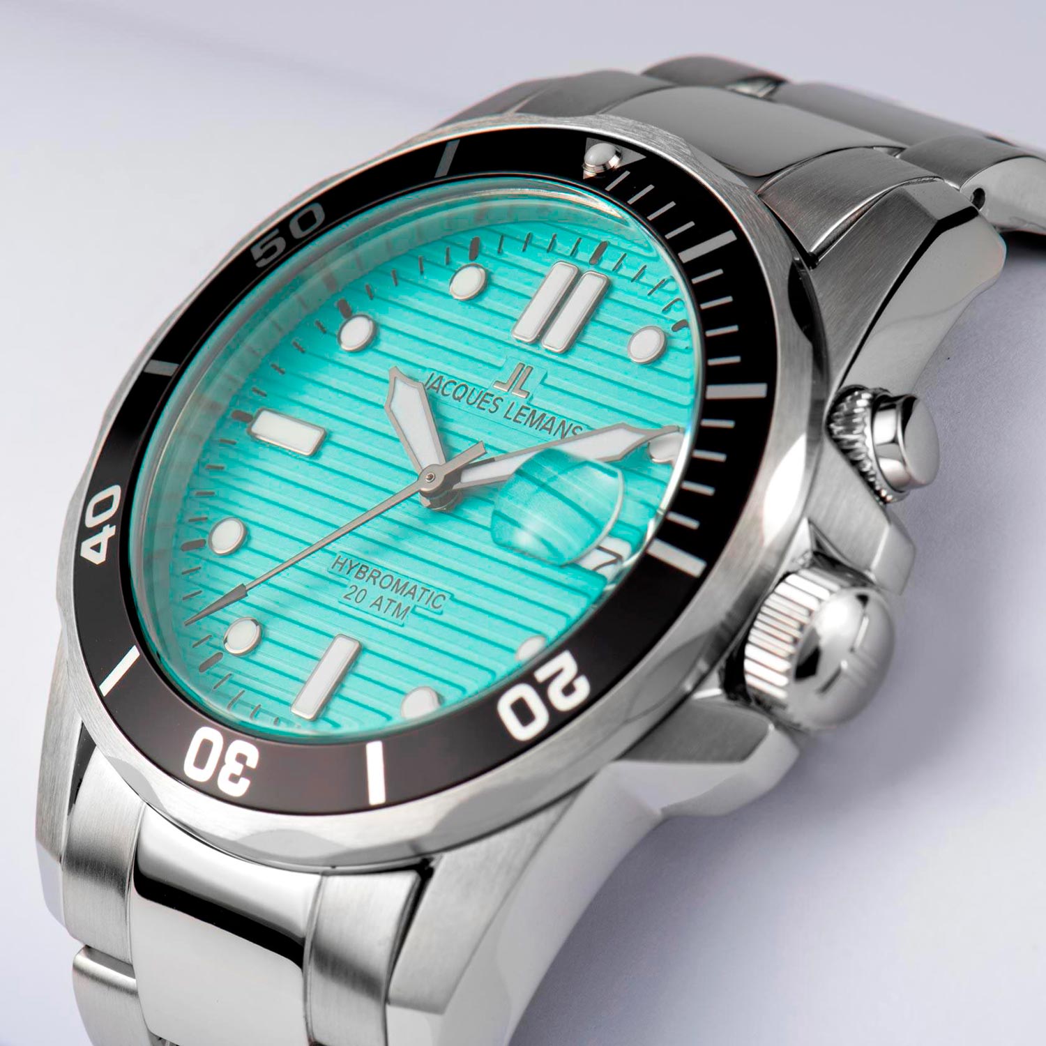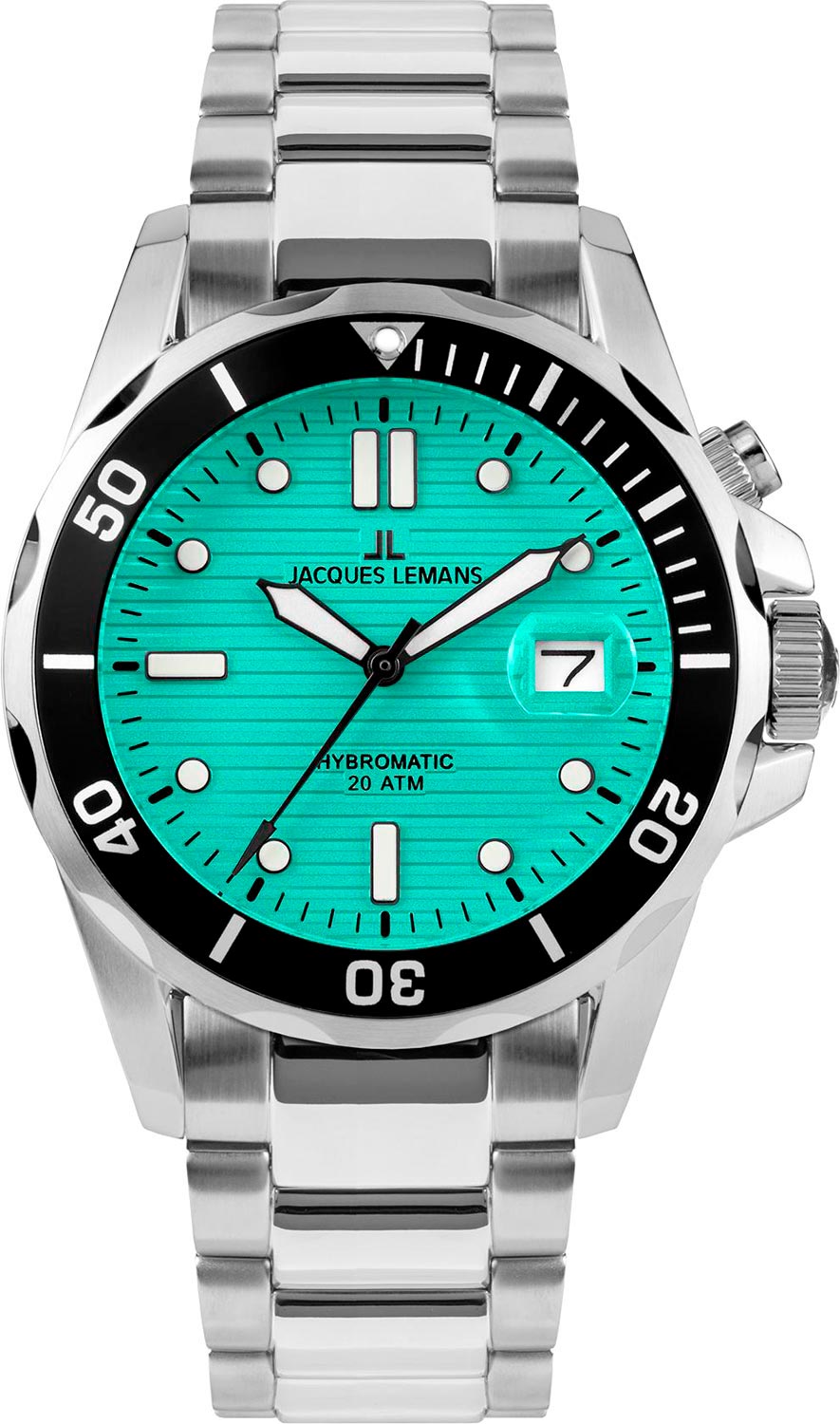 Практичный дизайн, надежность, высокие технологии - эти часы созданы специально для сильных мужчин, которые ищут приключения и не могут жить без адреналина и новых ощущений. Мужские наручные часы. Часы с уникальной технологией Jacques Lemans Hybromatic, которая сочетает в себе функциональность автоматических часов с точностью кварцевых часов. Движение руки приводит в движение маховик, генерирующий электрическую энергию, которая используется для запуска часов. Запас хода 4320 часов (180 дней). Аккумуляторные батареи рассчитаны на 12-15 лет. Круглый стальной корпус. Вращающийся безель с минутной шкалой. Структурный циферблат с накладными метками в виде точек и штрихов. Окошко даты с увеличительным стеклом в положении 3 часа. Стрелки и метки с люминесцентным покрытием, которое светится в темноте после непродолжительной зарядки на свету. Ударопрочное минеральное стекло Crystex. Рифленая заводная головка с защитой. Стальной браслет с раскладывающейся застежкой.