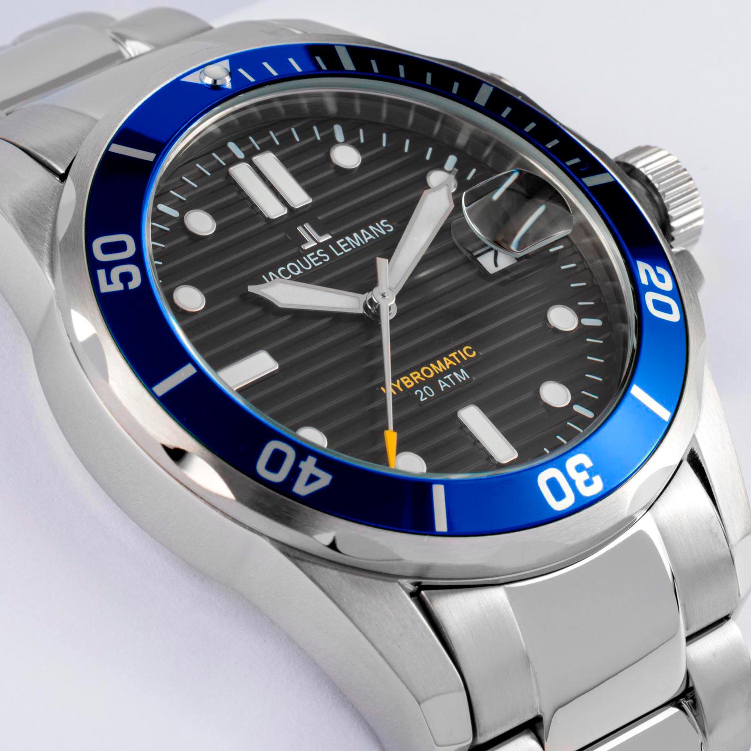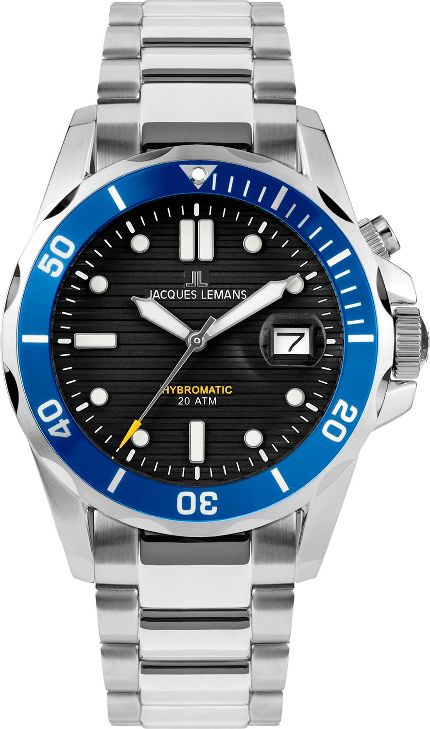 Практичный дизайн, надежность, высокие технологии - эти часы созданы специально для сильных мужчин, которые ищут приключения и не могут жить без адреналина и новых ощущений. Мужские наручные часы. Часы с уникальной технологией Jacques Lemans Hybromatic, которая сочетает в себе функциональность автоматических часов с точностью кварцевых часов. Движение руки приводит в движение маховик, генерирующий электрическую энергию, которая используется для запуска часов. Запас хода 4320 часов (180 дней). Аккумуляторные батареи рассчитаны на 12-15 лет. Круглый стальной корпус. Вращающийся безель с минутной шкалой. Структурный циферблат с накладными метками в виде точек и штрихов. Окошко даты с увеличительным стеклом в положении 3 часа. Стрелки и метки с люминесцентным покрытием, которое светится в темноте после непродолжительной зарядки на свету. Ударопрочное минеральное стекло Crystex. Рифленая заводная головка с защитой. Стальной браслет с раскладывающейся застежкой.