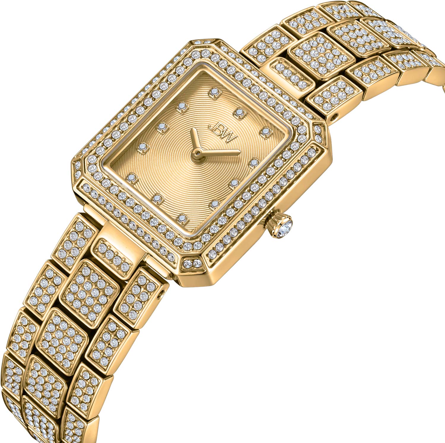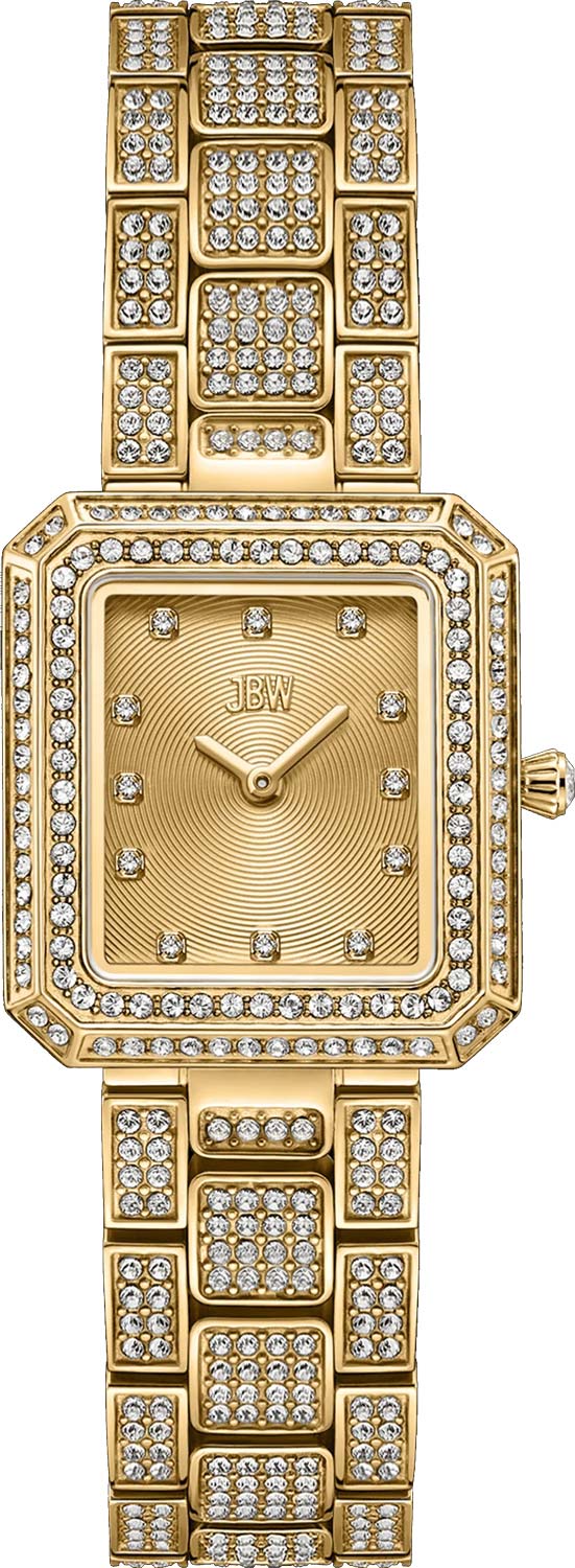 Рифленая заводная головка украшена кристаллом. Надежный стальной браслет украшен россыпью кристаллов. Стальная задняя крышка крепится на 4-х винтах. Браслет с раскладывающейся застежкой.