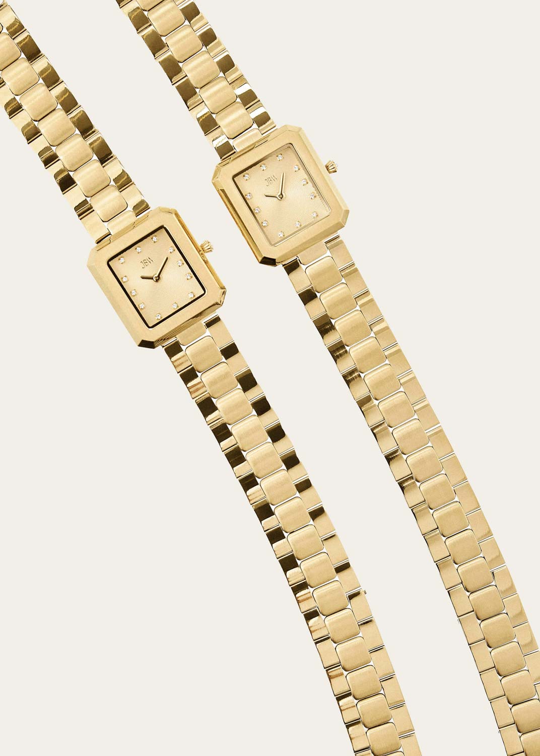 Arc Double. Женские наручные часы. Прямоугольный стальной корпус. Циферблат выполнен по технологии Sunray (солнечные лучи) и украшен фирменным логотипом. Метки в виде точек, инкрустированных искусственными бриллиантами. Мечевидные стрелки в стиле Sword.