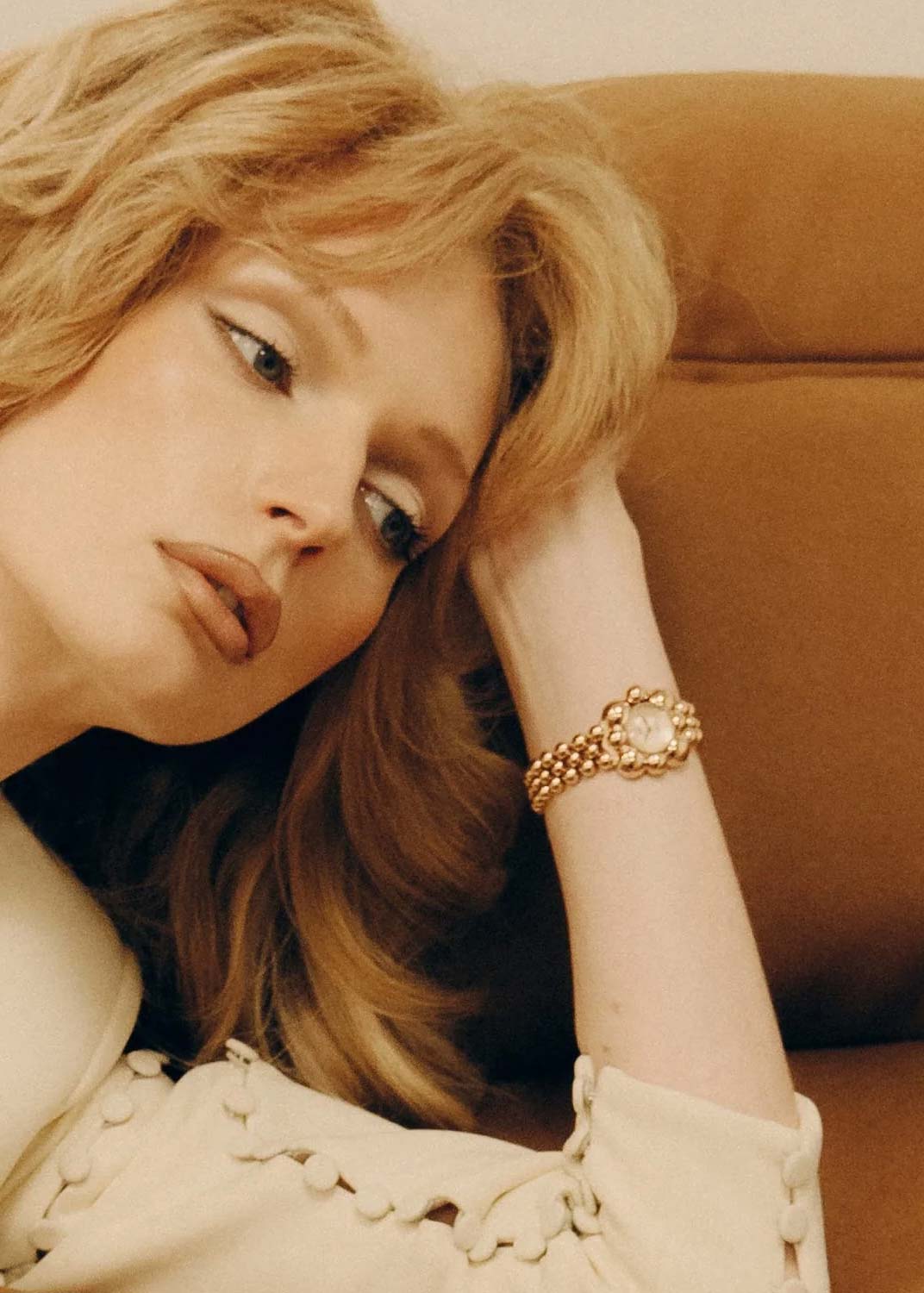 Atmosphere. Женские наручные часы. Стальной корпус. Перламутровый циферблат украшен искусственными бриллиантами, находящимися на отметках 6 и 12 часов. Мечевидные стрелки в стиле Sword. Заводная головка в форме сферы. Стальная задняя крышка крепится на 4-х винтах. Стальной браслет с раскладывающейся застежкой.