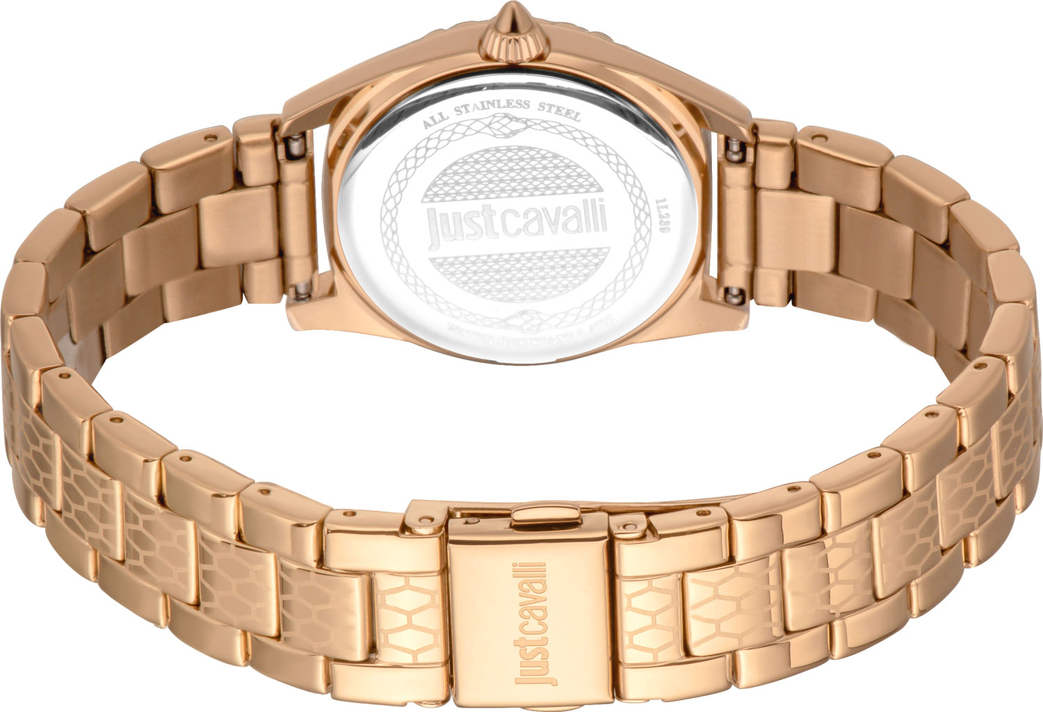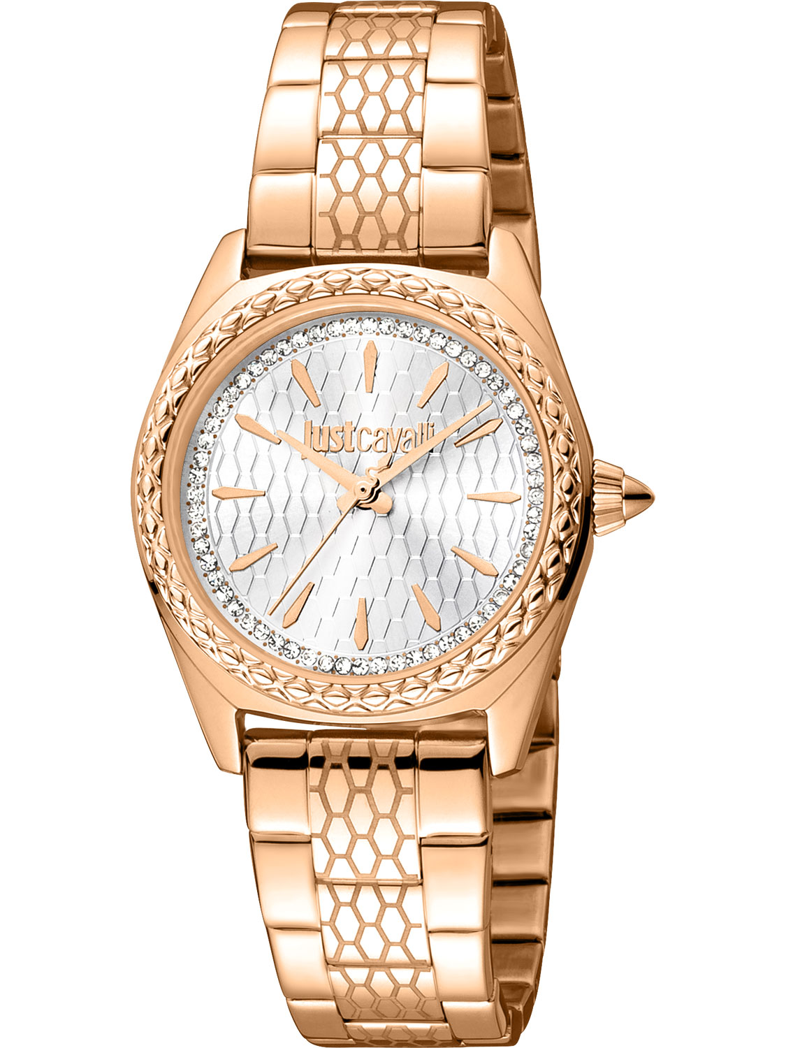Сияние кристаллов привлечет внимание окружающих и поднимет вам настроение. JC Fashion. Женские наручные часы. Круглый стальной корпус c полированной поверхностью. Циферблат выполнен по технологии Sunray (солнечные лучи) и украшен кристаллами Swarovski. Безель, циферблат и браслет выполнены в едином фирменном стиле под змеиную кожу. Секундная стрелка украшена элементом в форме змеи. Метки в виде штрихов. Рифленая конусообразная заводная головка. Задняя крышка с гравировкой. Надежный стальной браслет с раскладывающейся застежкой.