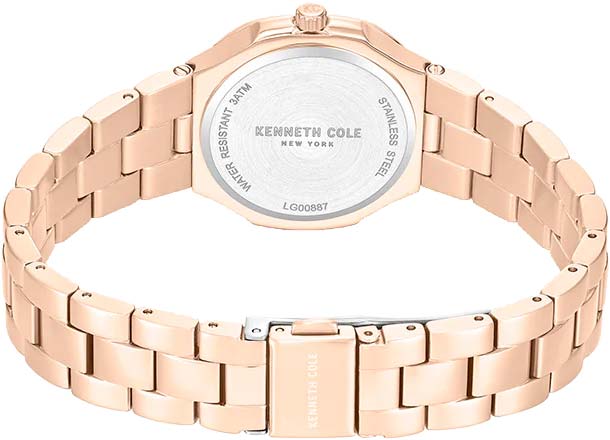 Rockland. Женские наручные часы. Круглый стальной корпус украшен паве из кристаллов. Перламутровый циферблат с накладными метками в виде римских цифр. Рифленая заводная головка с защитой. Стальной браслет с раскладывающейся застежкой.