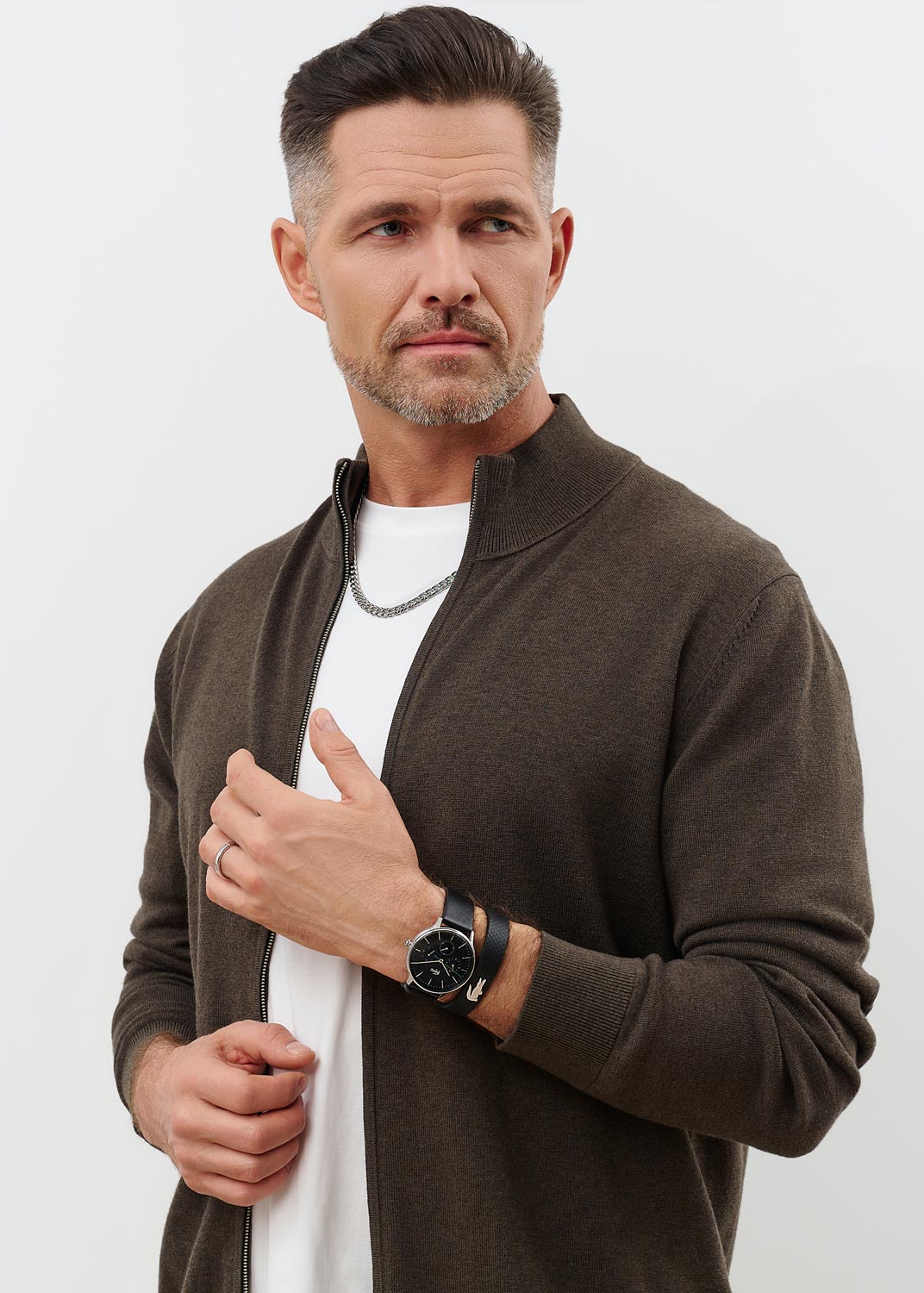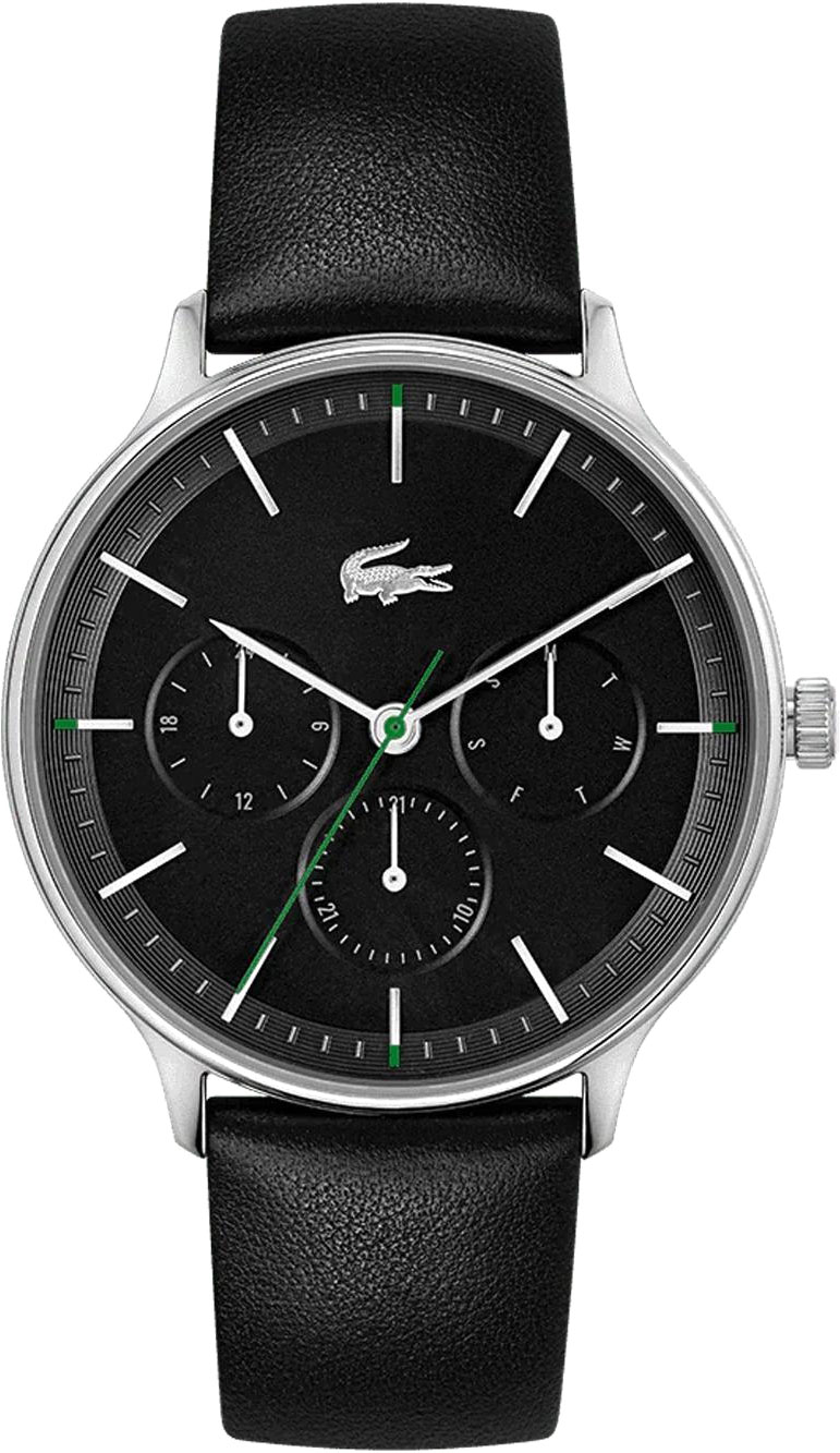 Элегантный дизайн, простота и качество - часы для идеального образа модного мужчины. Модные часы. Круглый стальной корпус с минеральным стеклом. Циферблат украшен фирменным логотипом. Узкие заостренные прямоугольные стрелки в стиле Baton. Метки в виде штрихов. 12-ти и 24-х часовой формат времени, дата и день недели отображаются на отдельных циферблатах. Рифленая заводная головка. Удобный кожаный ремешок с классической застежкой.