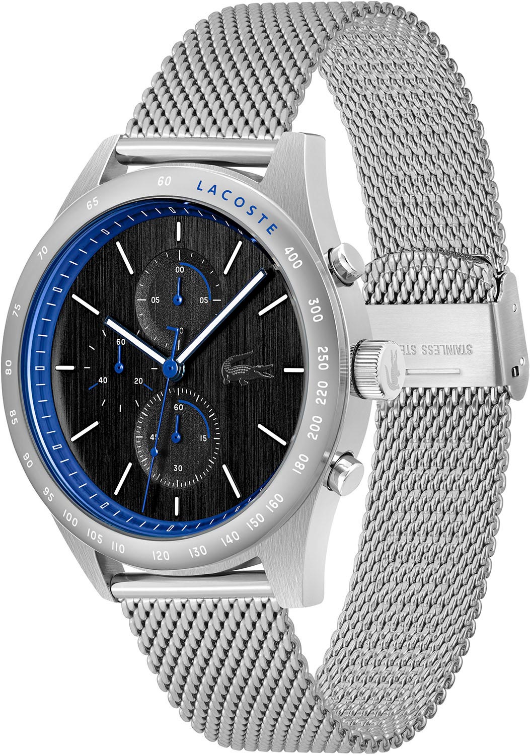 Функциональные часы с яркими акцентами прекрасно впишутся в стильный образ молодого человека. Мужские наручные часы-хронограф с секундомером и тахиметром. Круглый стальной корпус с минеральным стеклом. Матовый циферблат украшен фирменным логотипом. Накладные метки в виде штрихов. Прямоугольные стрелки в стиле Baton. Метки и стрелки с люминесцентным покрытием, которое светится в темноте после непродолжительной зарядки на свету. Рифленая заводная головка с логотипом. Завинчивающаяся задняя крышка. Удобный и надежный стальной браслет миланского плетения с регулируемой застежкой, украшенной фирменным логотипом.